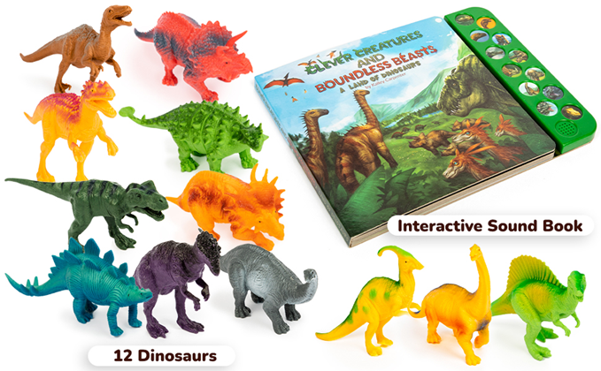 • WHAT’S INCLUDED: (12) Life-Like Dinosaur Toy Figures, (1) Dinosaur Sound Book
