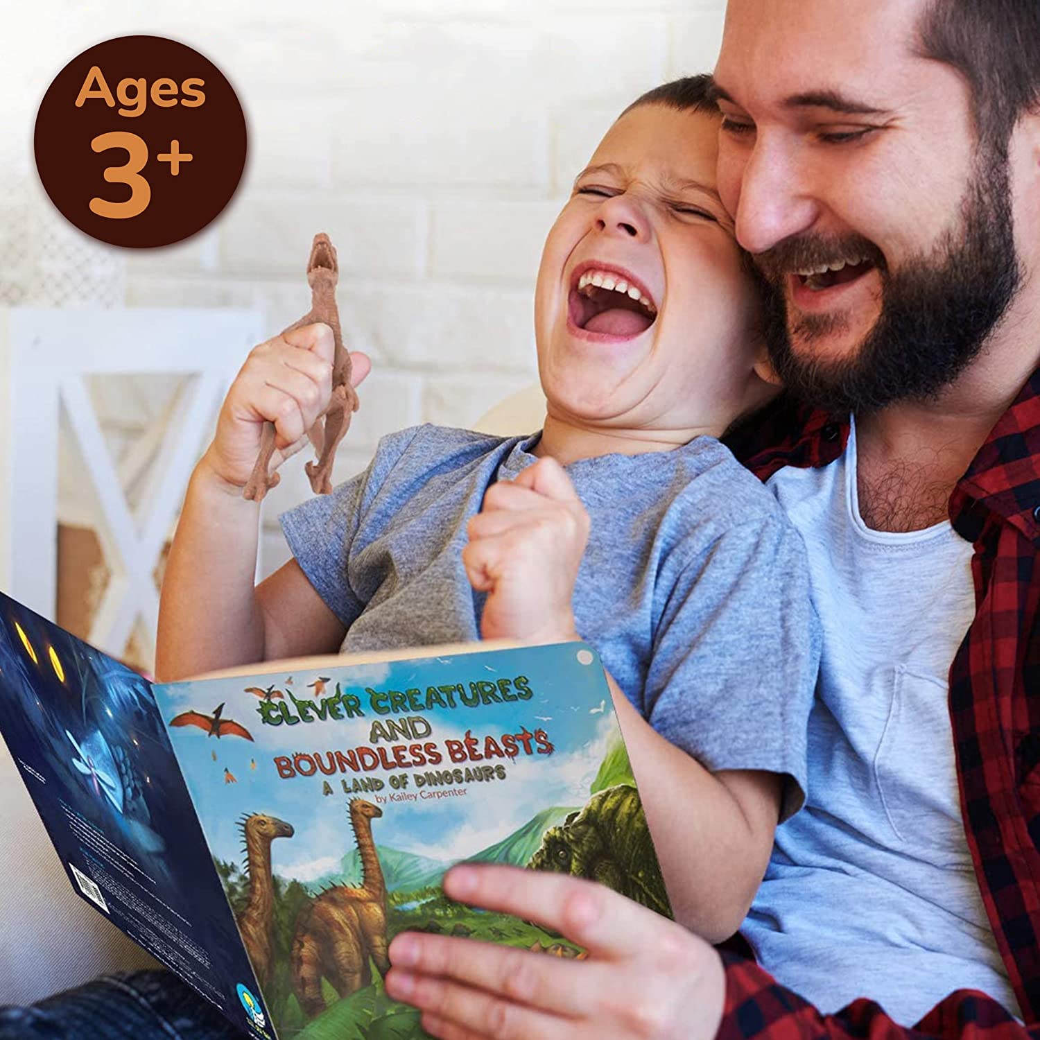 • EDUCATIONAL AND FUN: Playtime provides a lot of learning, especially as your kids familiarize themselves with 12 of the enormous dinosaurs and their natural cries. Read the accompanying story in the dinosaur book or let them make one on their own. This dinosaur toy collection is the perfect set of dinosaur toys for 3-year old kids and even older. Learning sure is fun with this pack of dinosaurs toys!