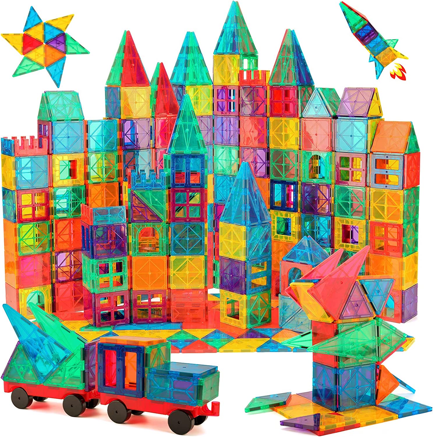 Ideal Gifts for Kids: Magnetic tile set is easy to clean and is a gift for kids' birthday, Halloween, Christmas. Bring joy and fun to your kids and let them grow up happily playing with tile magnets.