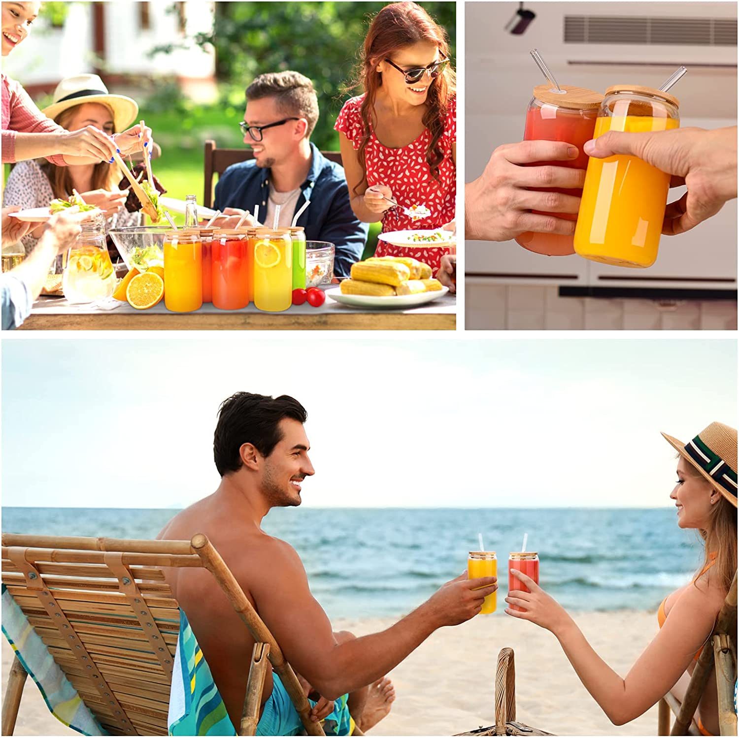 [WIDE RANGE OF USES] These cute glass cups are suitable for different occasions, like home, kitchen, bars, cafes, holiday party, restaurants, seaside and outdoor camping. These drinking glasses are perfect for beverage lovers, can make all kinds of fun holiday drinks with them, such as iced coffee, water, beer, soda, boba bubble Pearl Milk Tea, tea, smoothie, fruit juice, cocktails and more colorful drinks.