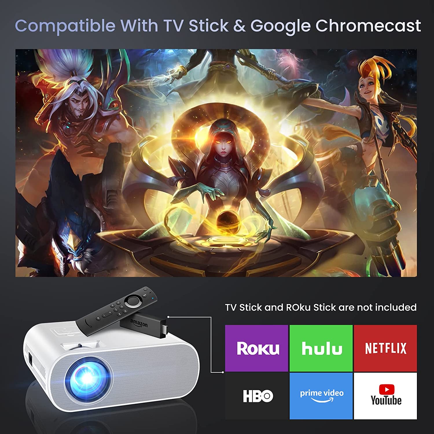 • ?【Phone Projector with Wide Compatibility】:Equipped with HDMI, AV, USB, 3.5mm headphone interface, the smart projector is compatible with TV Box, TV Stick, Laptops, Tablets, USB Flash Drive, etc. it's compairble to multiple devices to meet most daily home theater requirements—Home Theater, Video Game, Party, Apartment.