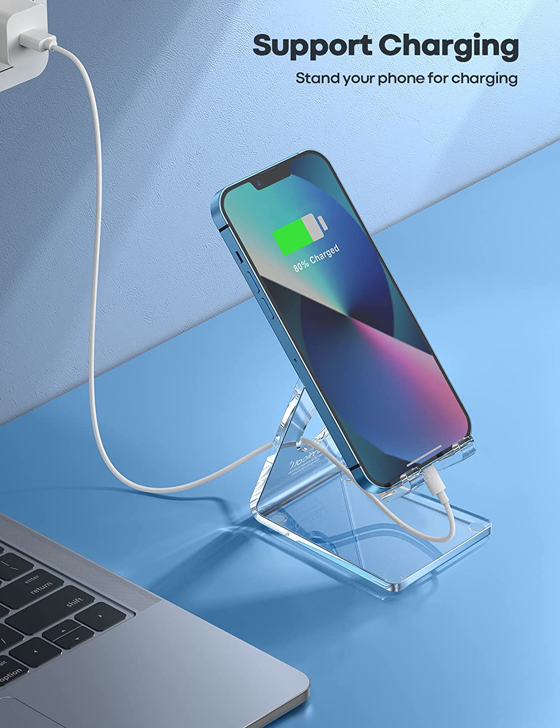 【High Quality Acrylic Material】Using acrylic material, strong and excellent durability. It is a fashionable design that decorates any environment. Keep your desk clean by tidying up cluttered cords. Stable and easy to watch Youtube or FaceTime. Besides, rubber non-slip pads protect the surface of your phone case and desk from scratches.