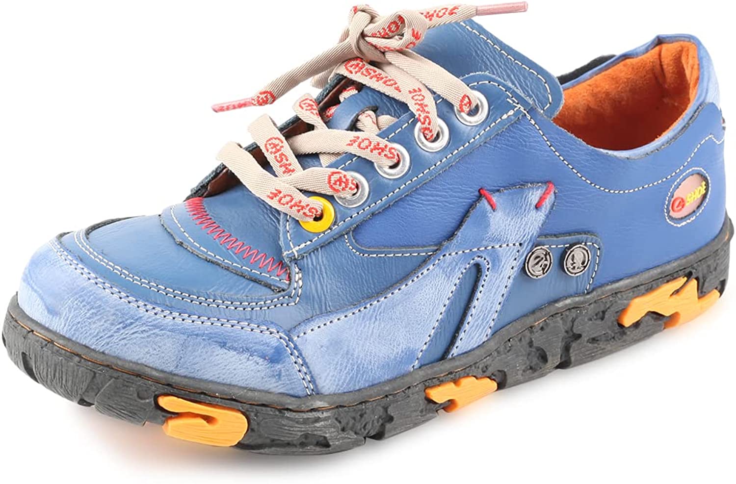 CHSHOER Women's Leather Patchwork Shoes Lace-Up Casual Shoes