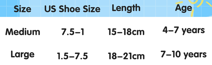 • 75% cotton, 22% polyester and 3% spandex. Medium: shoe size 7.5-1 (4-7 years); Large: shoe size 1.5-7.5 (7-10 years).