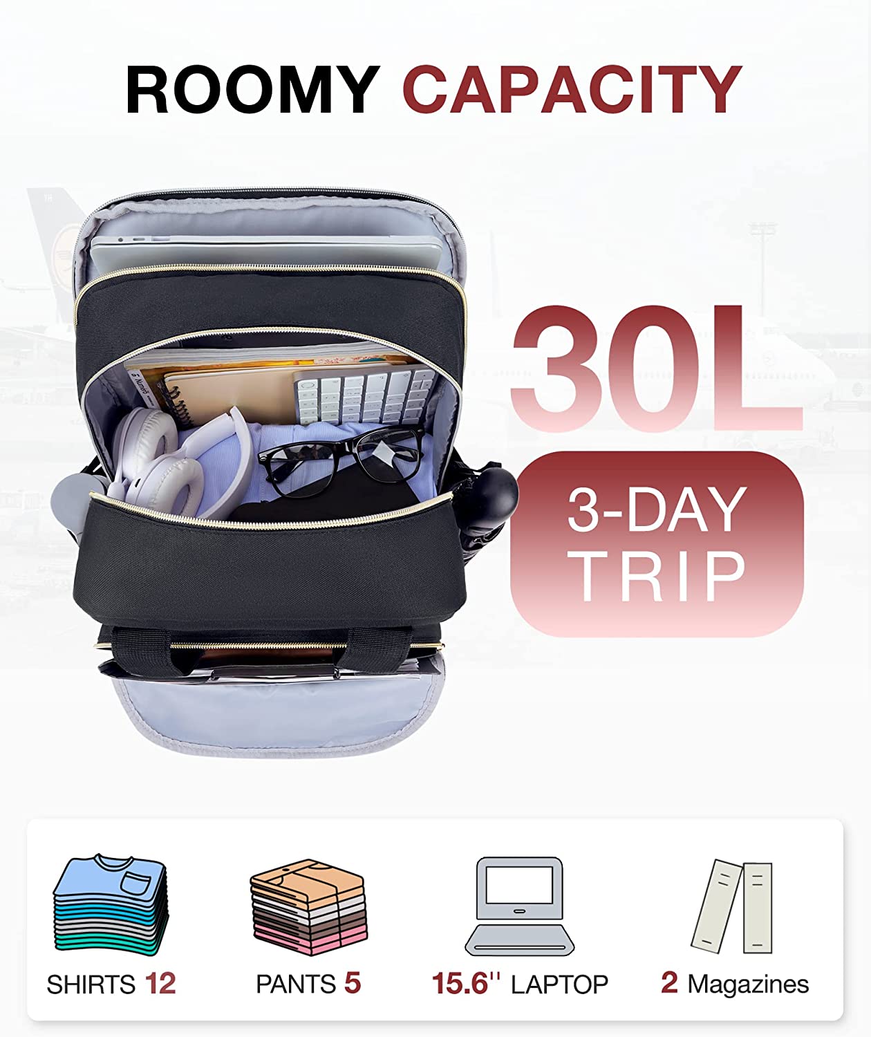 Multipurpose: Its chic look makes it as a travel backpack, laptop backpack, college backpack, casual daypack, computer backpack, bookbag. The airline approved carry-on can be fitted overhead and under-seat, is ideal for the weekend trip, business trip and travel. This roomy backpack is perfect as a gift for friends, family, women or college, for birthdays, Valentine's Day, Christmas Day