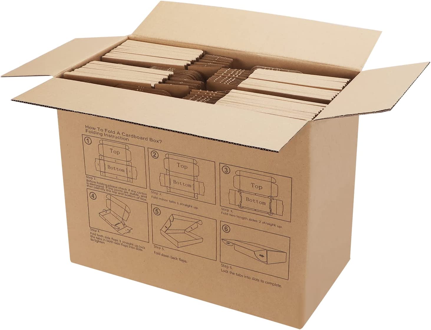 EASY FOLD: The corrugated boxes are easy to put together in seconds, the tuck top has two locking taps to close boxes and keeps secure