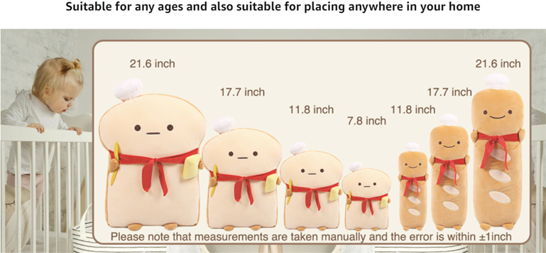 ARELUX Funny Toast Sliced Bread Pillow,Bread Shape Plush Hugging Pillow with Red Scarf,Soft Toast Food Sofa Cushion for Home Decor,Plush Toy Gifts for Kids Birthday(17.7'')