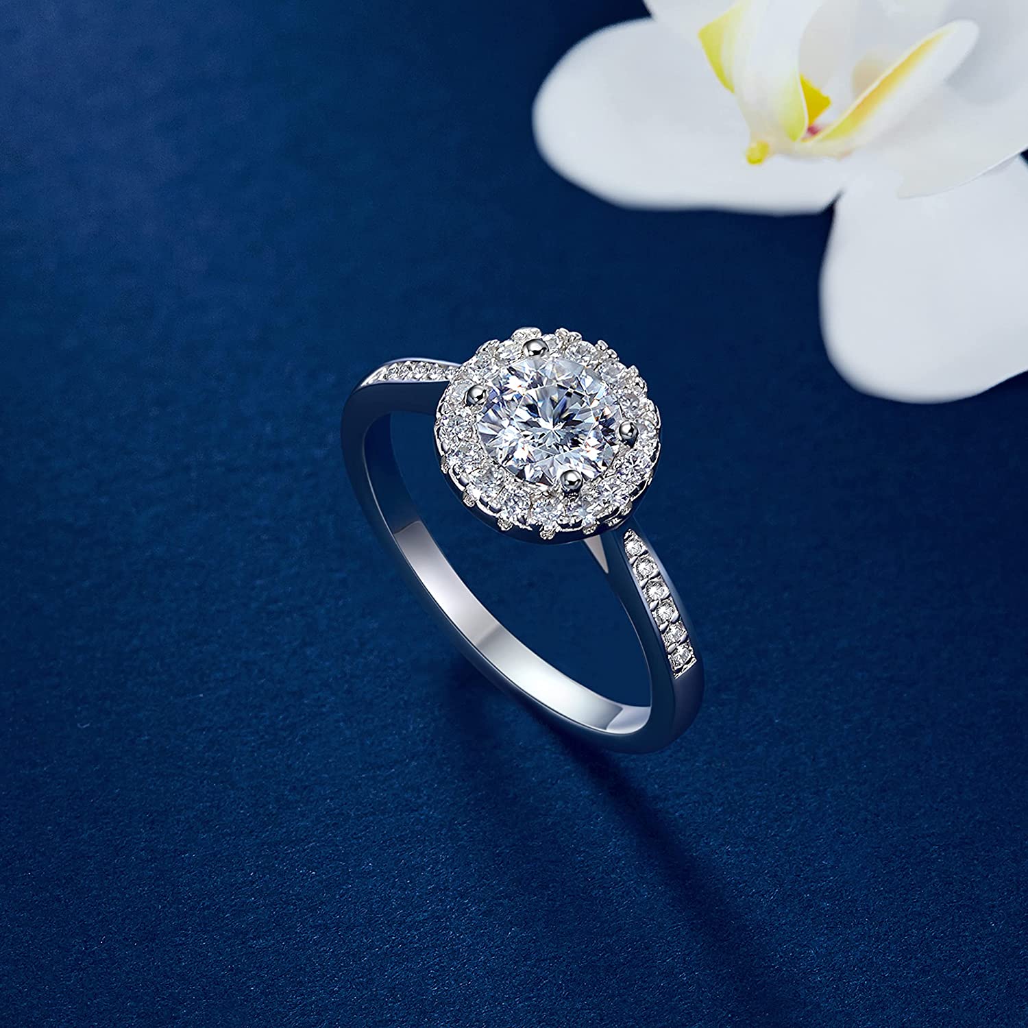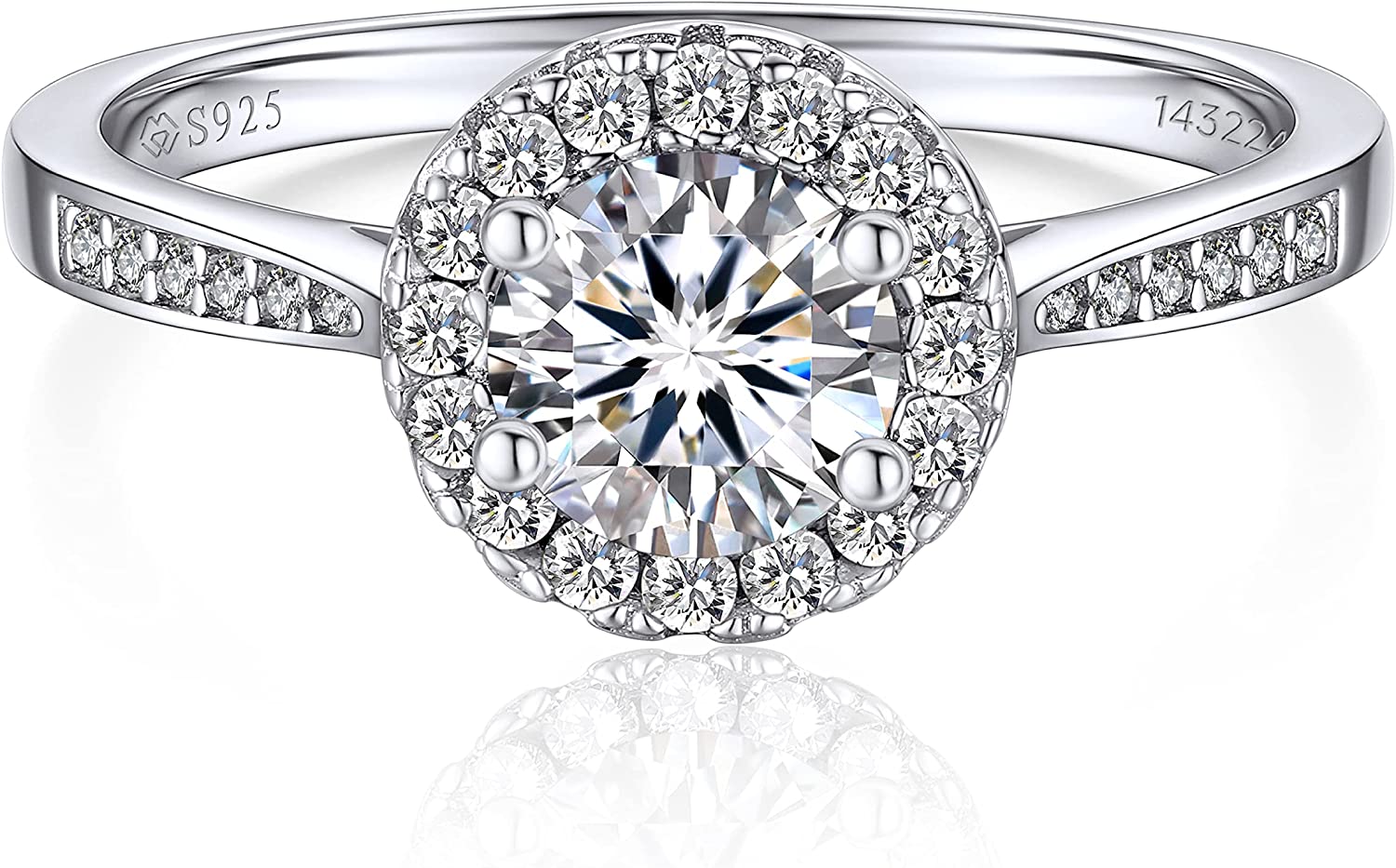 MomentWish Engagement Rings for Women, 1Carat Moissanite Promise Rings, D Color VVS1 Simulated Diamond 925 Sterling Silver Halo Rings