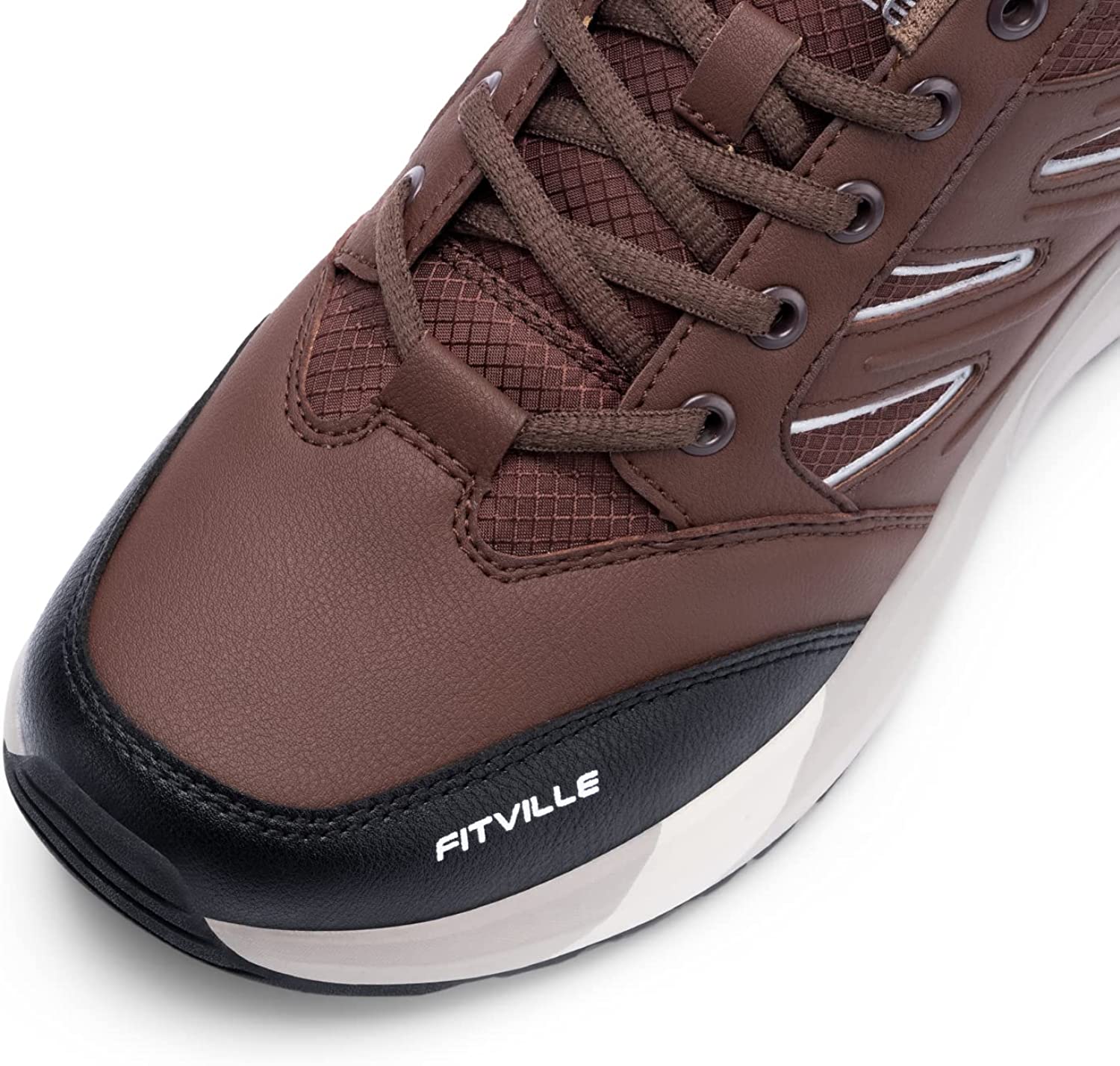 FitVille Mens Wide Hiking Shoes Waterproof Outdoor Work Shoes Trekking Trails Sneakers with Arch Support for Heel Pain Relief - Sturdy Core