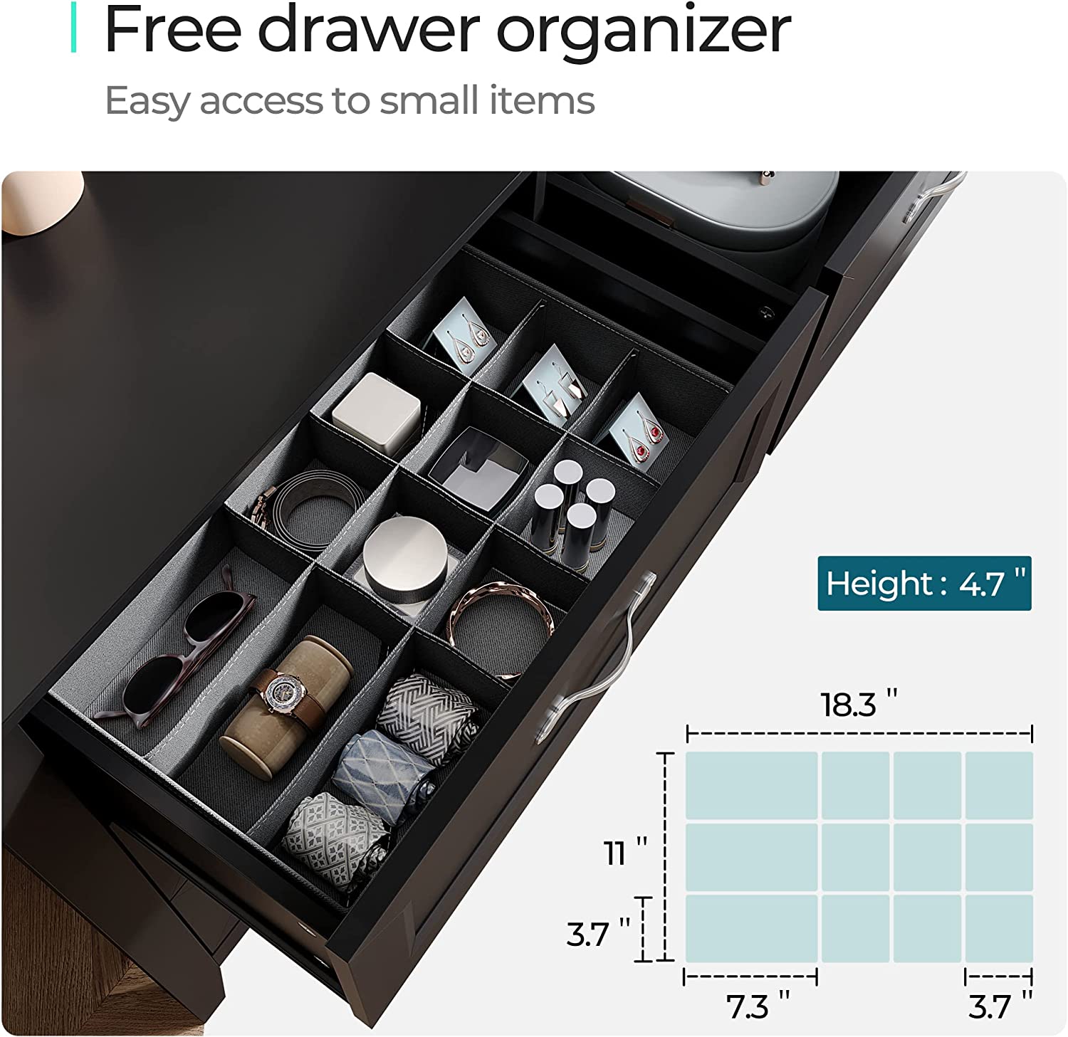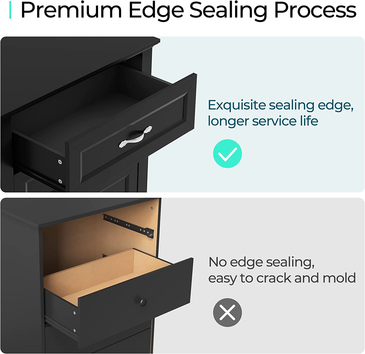 • [PREMIUN MATERIAL] - Crafted with CARB P2 & TSCA certified eco-friendly manufactured wood, we do care about your health. Exquisite sealing process gives the dresser a waterproof surface and smooth texture, making it long-lasting.