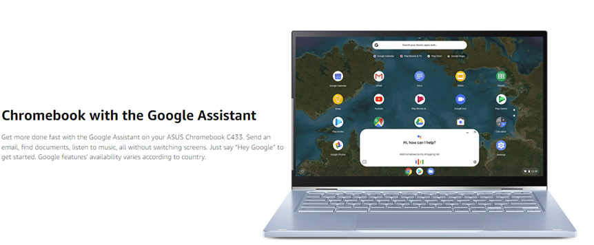 • Chromebook runs on Chrome OS - an operating system by Google that is built for the way we live today. It comes with built-in virus protection, updates automatically*, boots up in seconds and continues to stay fast over time