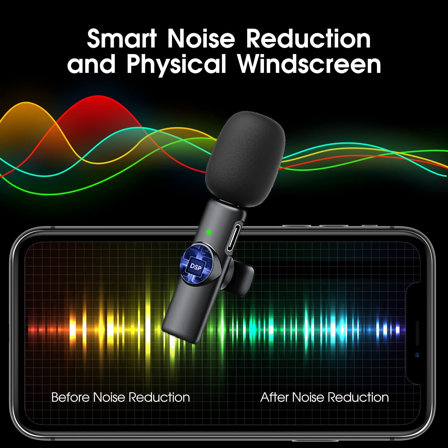 • 【Dual Wireless Microphones for iPhone】This dual wireless lavalier microphone set built-in noise reduction chip, real-time auto-sync technology, and 2.4G signal transmission with super low latency(0.009s), the sound picking-up follows the picture in real-time. Lapel microphone wireless can easily cope with various noisy environments and truly restore human voices.