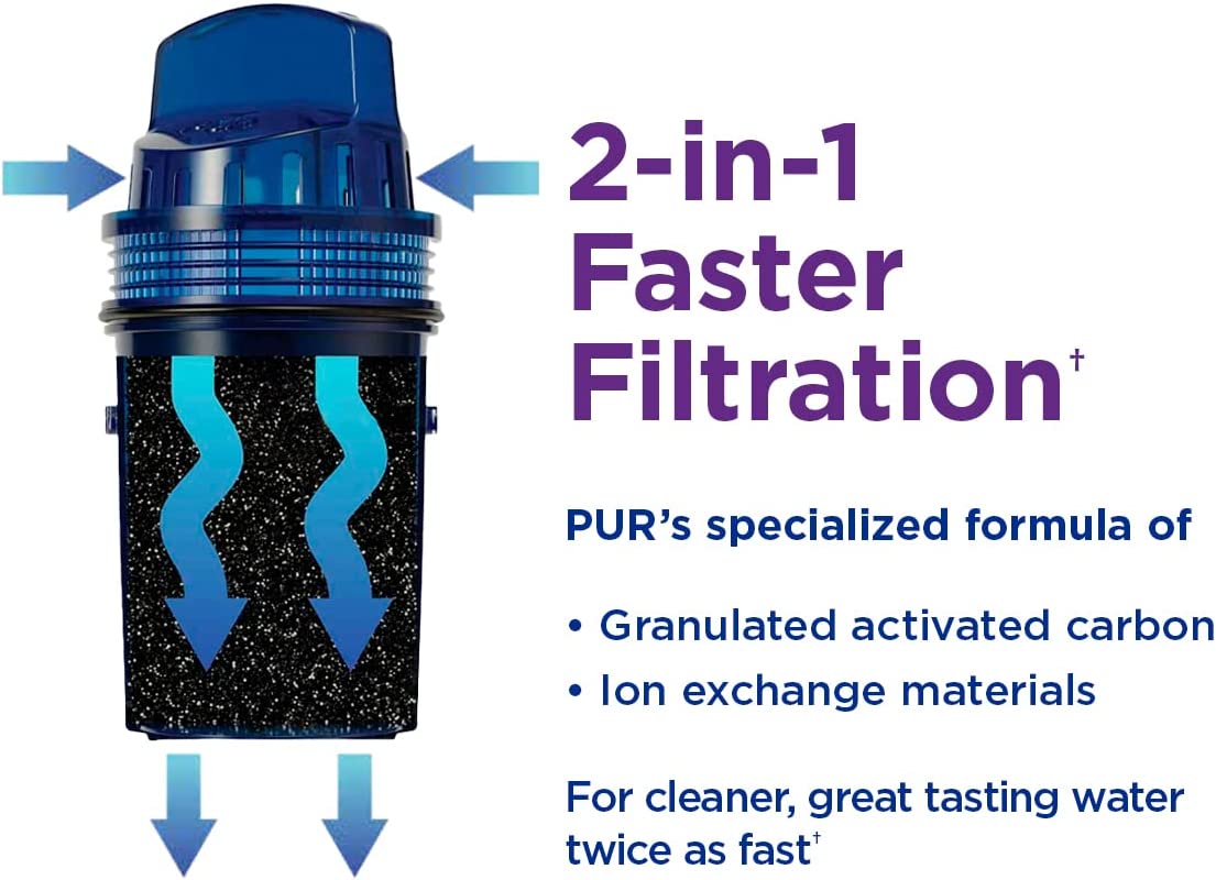 • REDUCES CONTAMINANTSƚ – PUR’s superior water filter technology uses activated carbon and ion exchange media and is certified to reduce 2x more contaminants than Brita’s leading pitcher filter.*ƚ Certified to reduce Chlorine for great taste.