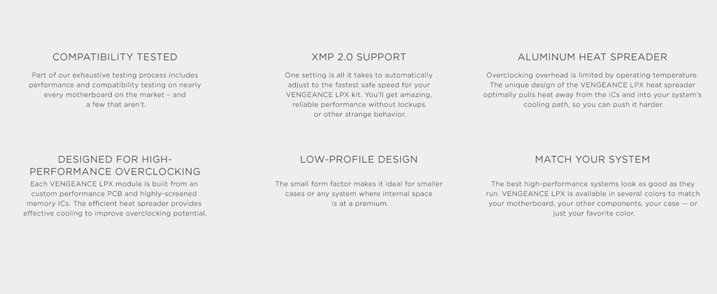 • Performance and Compatibility: VENGEANCE LPX is optimised and compatibility tested for the latest Intel and AMD DDR4 motherboards