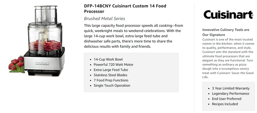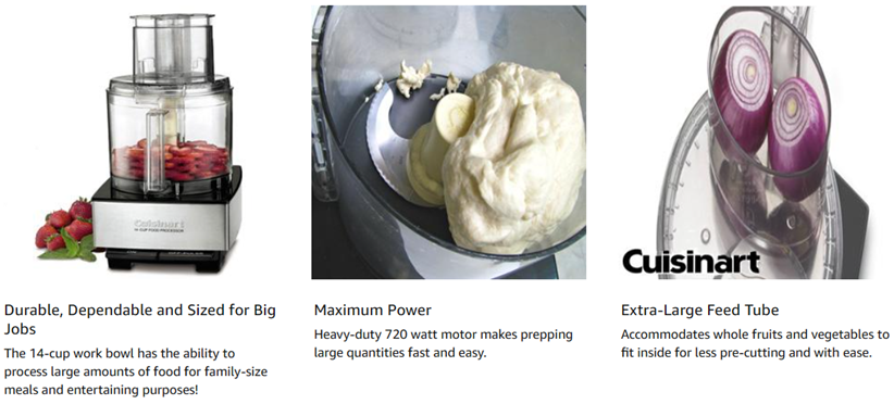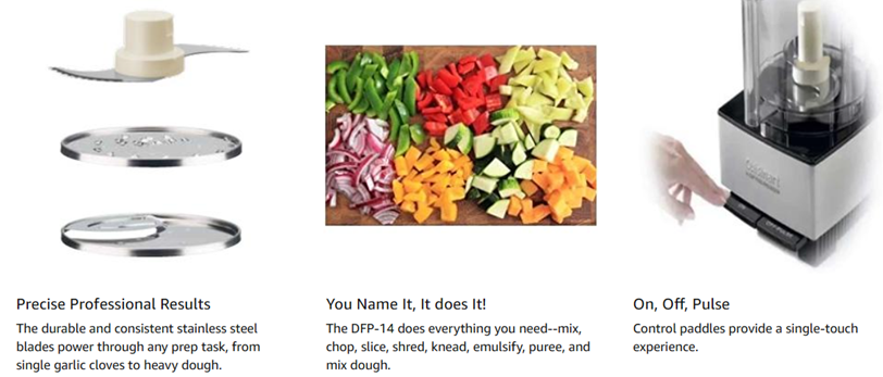 • SUPERIOR FUNCTION: Cuisinart’s 720-watt motor for our 14-cup large-capacity food processor can handle almost anything. Make any kind of dip, puree soup or sauce including hummus, salsa, guacamole - the possibilities are endless