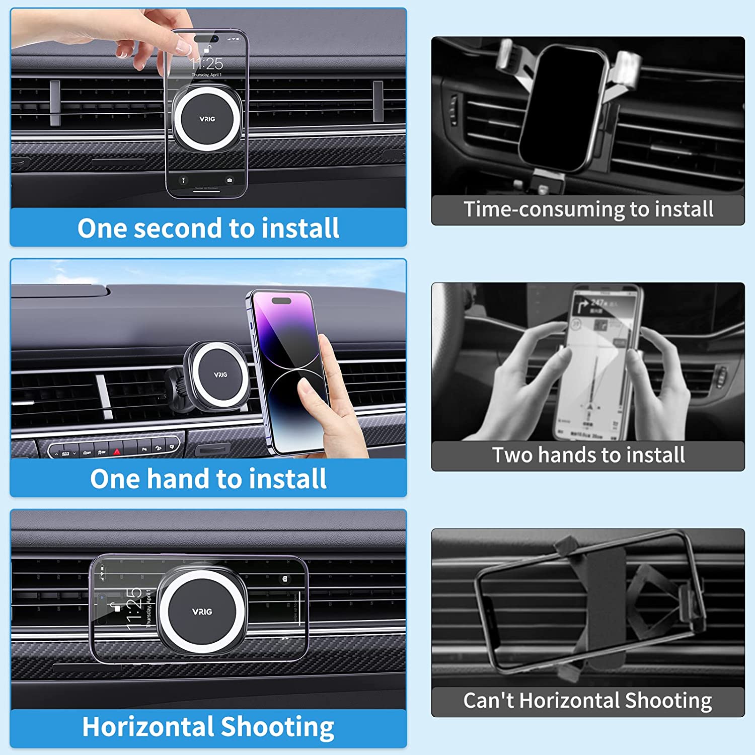 ? Convincing quality and universal compatibility: VRIG car phone stand has passed magnetic force, telephone signal, hook stability and ingredient safety tests. The quality shall be strictly controlled. The car stand holds most smartphones and mini tablets compatible with iPhone 14 13 12 11 pro max/XR/X/8/7/6/5, Note 9/Galaxy Note20 U, S21 S20 S10 S9 S8 S7 S6, iPad Air 2/mini 3/pro 9.7 and more. This product can be used with MagSafe.