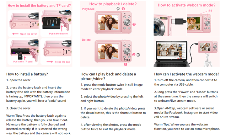 - [Perfect Gift & After-Sales Maintenance] This is a cost-effective entry-level digital point and shoot camera ,easy to operate,ideal gift for kids,adult,seniors,students,beginners. Let your kids start to explore the wonderful world and leave impressive moments. For any quality issue, we provide 1 year warranty that ensures you a total hassle-free purchasing. Any problem or suggestion, please get in touch with us.