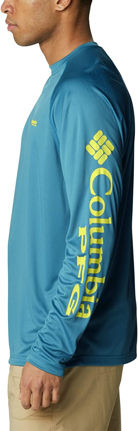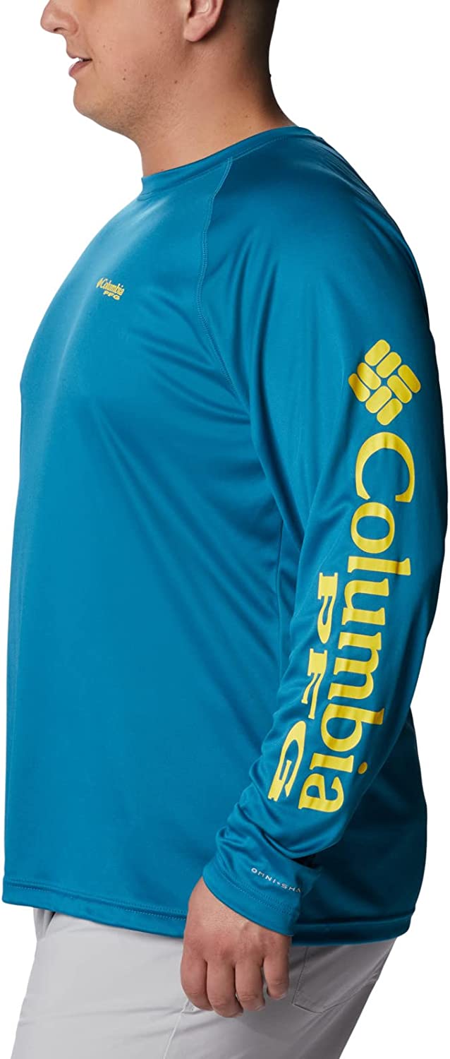The polyester interlock construction of our PFG Terminal Tackle Long Sleeve Shirt offers full coverage against harmful midday sun with UPF 50 protection. It’s also lightweight and quick drying, making it the perfect solution for staying cool while protecting your skin out over any highly reflective water. It’s the ultimate day-out-on-the-boat staple… lightweight, durable, go-to gear. This technology featured long sleeve Tee is necessity for any day out on the ocean, lake, or river. Made up of a combination of Columbia’s signature protection fabrics: UPF 50 works to block and shield you from harmful UVA and UVB sun rays known to cause skin damage, while the advanced wicking fabric works to pull moisture and water away from the skin. You remain cool while our signature PFG logo runs along the sleeve. Columbia offers this fishing shirt in multiple staple colors and sizes. Available in extended sizing. Regular Fit. To ensure the size you choose is right, utilize our sizing chart and the following measurement instructions: For the sleeves, start at the center back of your neck and measure across the shoulder and down to the sleeve. If you come up with a partial number, round up to the next even number. For the chest, measure at the fullest part of the chest, under the armpits and over the shoulder blades, keeping the tape measure firm and level.