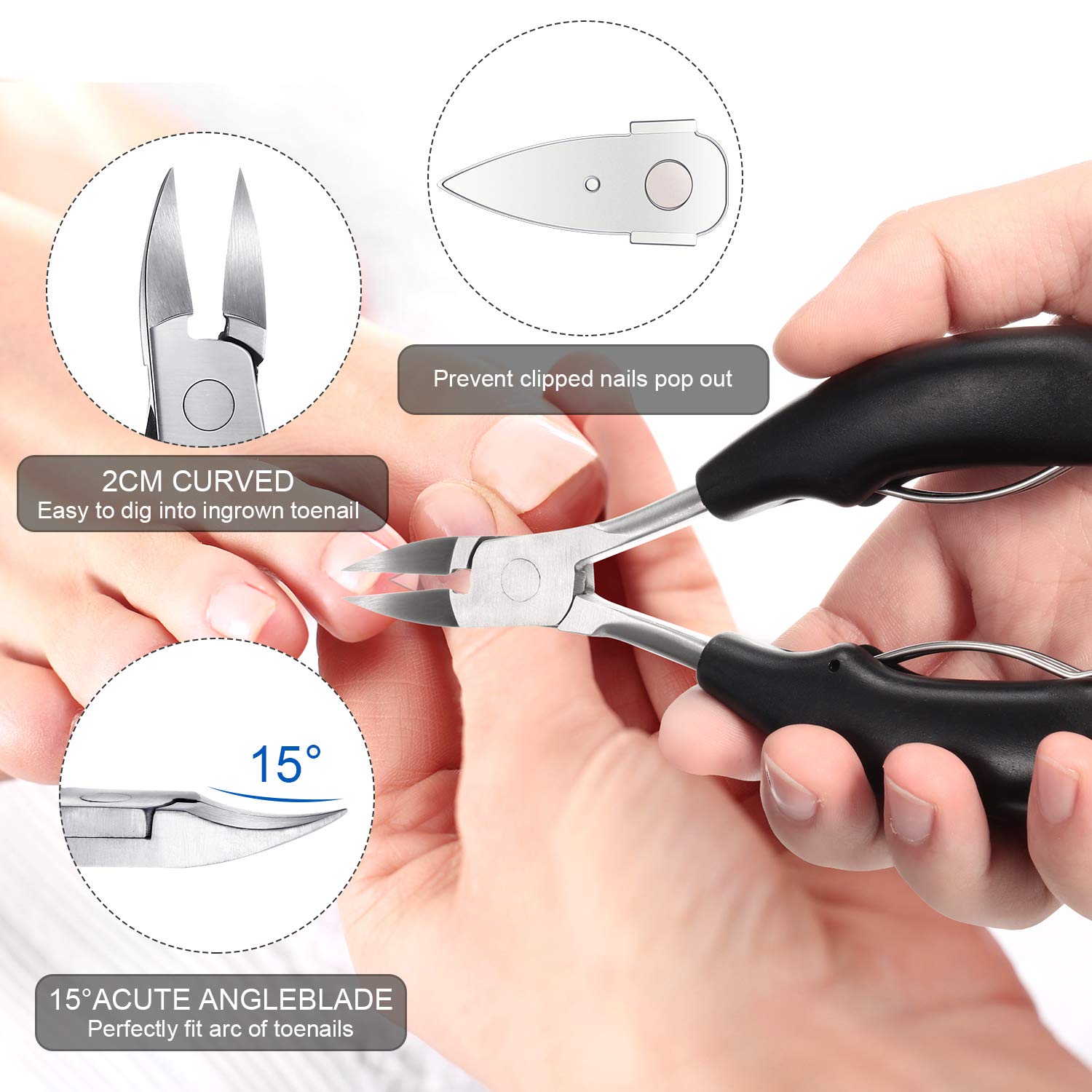 • Rather helpful for thick and ingrown nails: these nicely designed pedicure tools are especially suitable for cutting extra thick, tough and irregular nails due to age or other conditions, it can trim ingrown nail safely and relieve the pain caused by ingrown nails