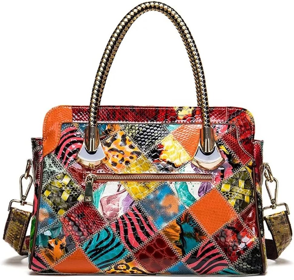 SHZBCDN Leather Bags Handbags Women's Printed Painted Tote Bags Women's Shoulder Bags (Color : A, Size