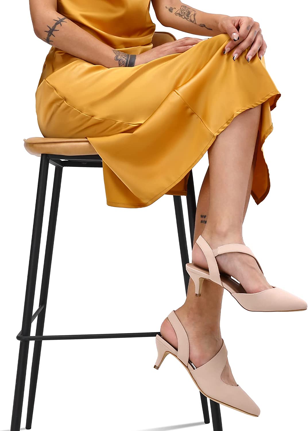 FASHION: Women's lady pumps with slingback design and classic pointed toe create the illusion of longer legs. Slip into a relaxed and exquisite state of mind with these pumps.