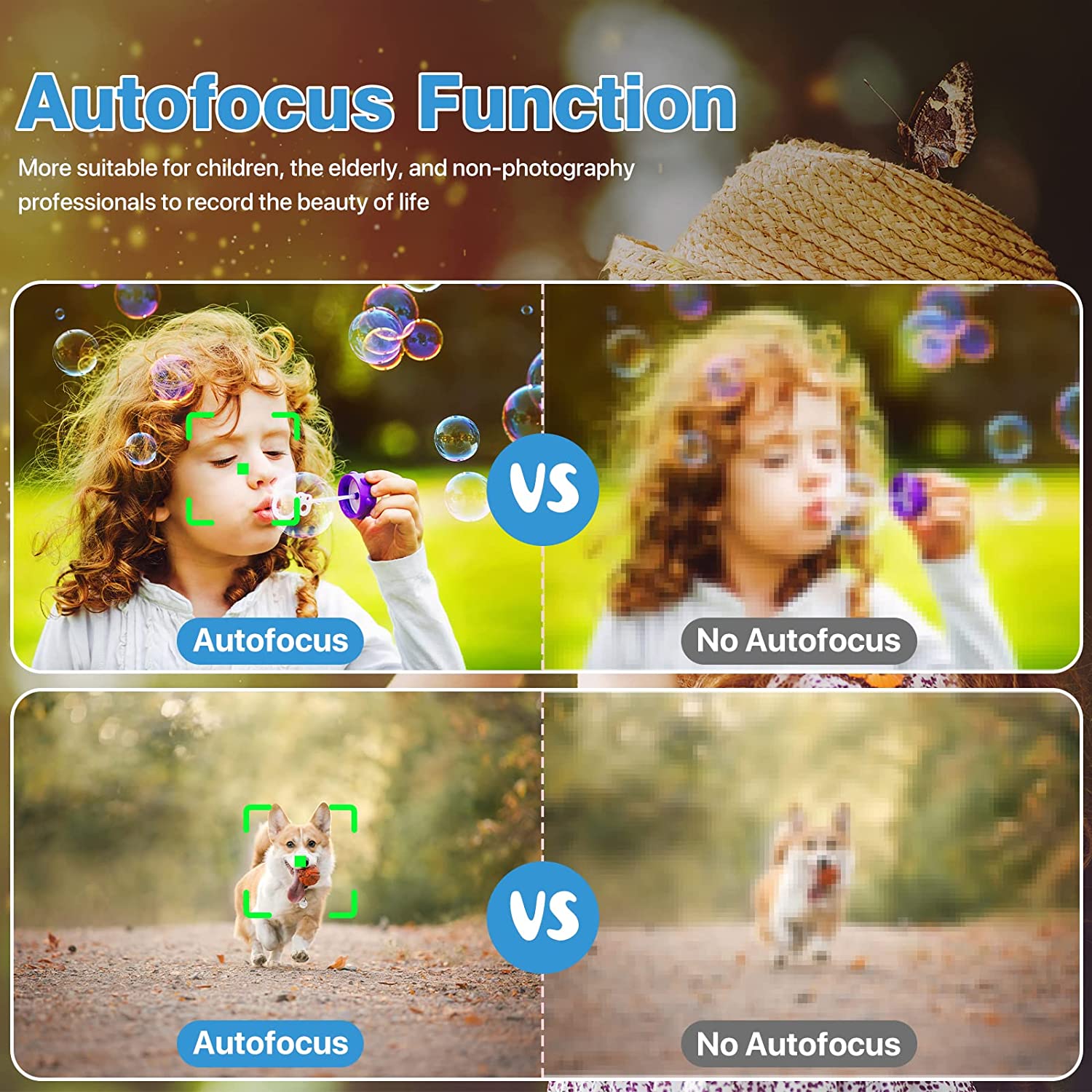 • 【Auto Focus & Easy to Use】This Compact mini digital camera with an sd card has an autofocus function that is useful for photographers to concentrate more on capturing the momentary scene of the subject. It is very light and small, smaller than a smartphone, you can easily put it in your pocket and carry it anytime, anywhere. This point-and-shoot digital camera is very easy to operate and simple to control, very suitable for the elderly, teenagers, children, and students.