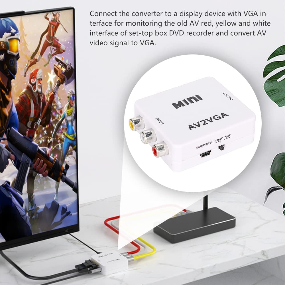 Video Converter, 480P Mini AV to VGA Adapter, Composite TV Set-Top Box Audio Video Converter (White)