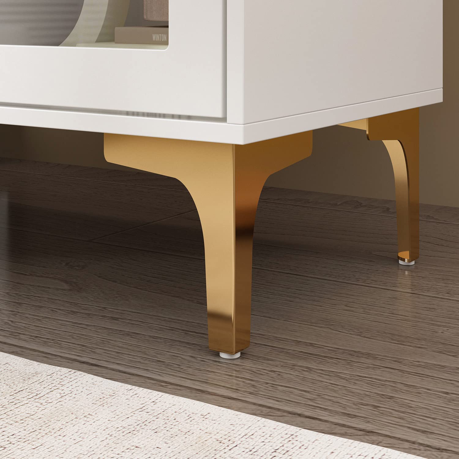 【Elegant Appearance】This sideboard cabinet will add modern charm to your home. The pure white boards match with gold handles and legs, the modern color match make this cabinet both romantic and elegant.