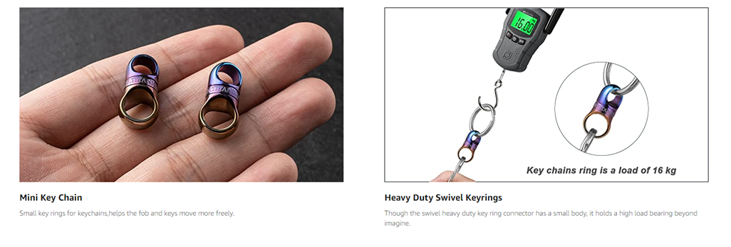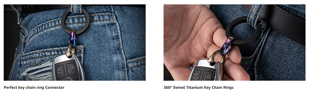 • DURABLE & WORRY-FREE SECURE -keychain rings Made of titanium alloy,lightweight but strong,corrosion and high temperature resistance,allergy free. Super Durable and Heavy Duty, lifetime using key chain rings.