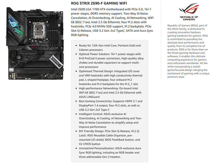 Item model number‎ROG STRIX Z690-F GAMING WIFI