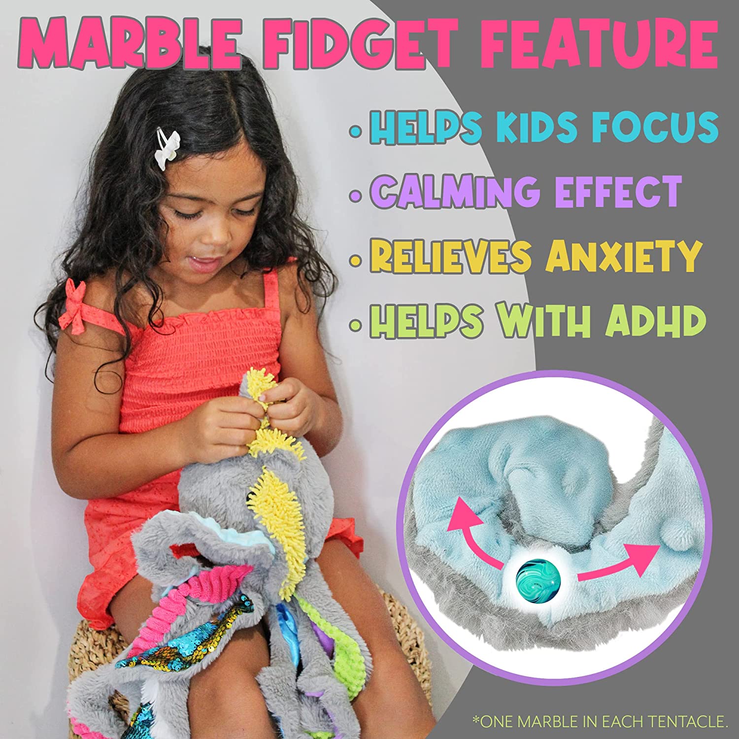 FIDGET FUN: Designed for fidgety fingers and hands, each of the sensory tentacles is expertly crafted with a marble inside so your child can happily fidget by pushing the marble up and down. Fidgeting helps your child focus and has a calming effect.