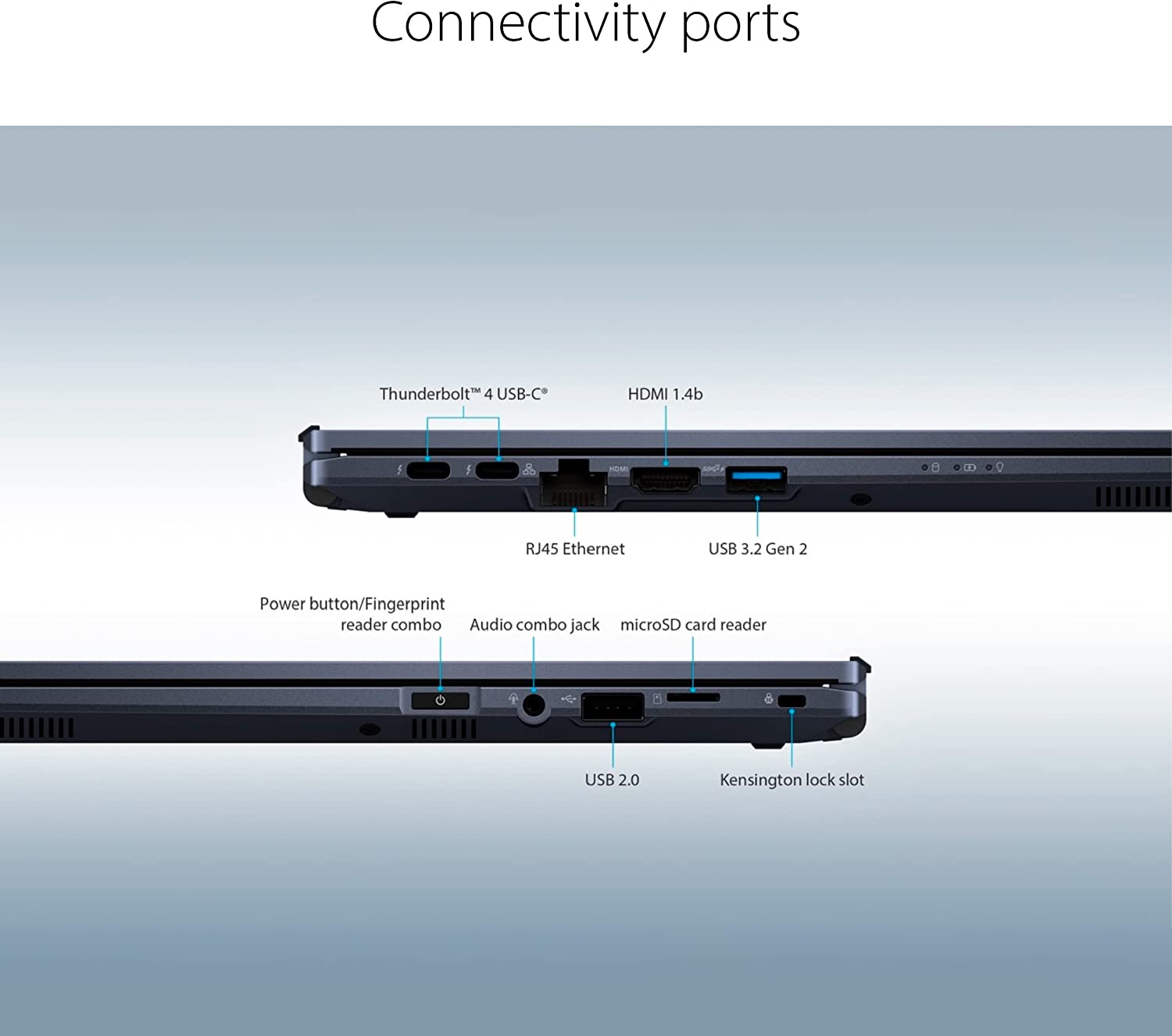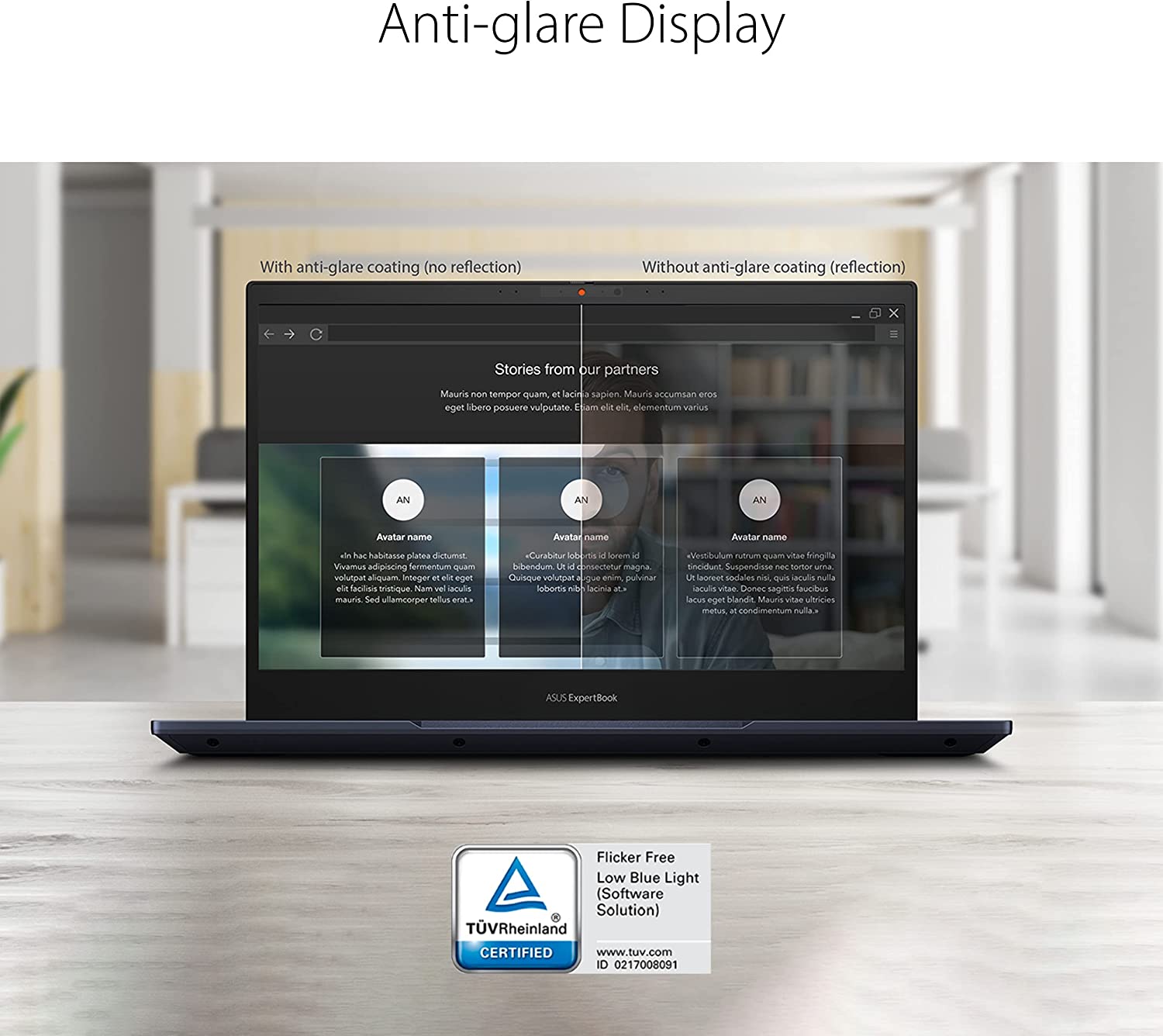 • 14-inch FHD display that is TUV certified to lower blue light emission