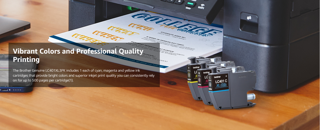 • THE CONVENIENCE OF MULTIPACKS. Brother Genuine LC401XL 3PK provides the ultimate in convenience giving you all three ink colors, Cyan, Magenta and Yellow, for your inkjet printer at once