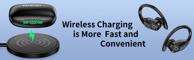 2.RIZIZI bluetooth earphones support wireless charging and USB C charging, and the 40hrs total playtime allows you to enjoy a full day of music.