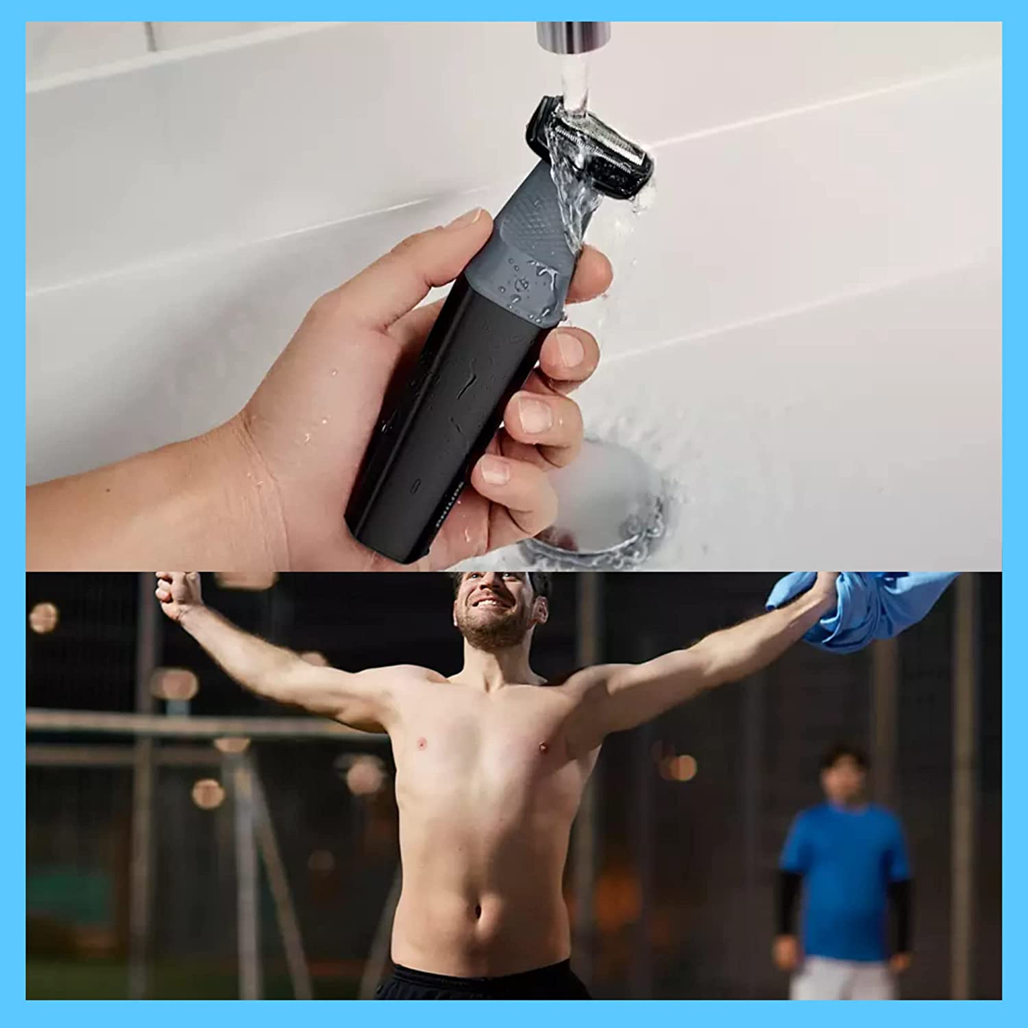 • Wet or Dry- Your wet and dry body groomer is 100% water resistant. The body hair trimmer for men is specifically showerproof designed with an ergonomic rubber grip for better control when wet.
