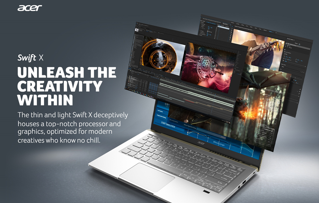 - Made to Move: At just 3.06 lbs, this Acer Swift X laptop is ready to go where you go. The metal design is thin and lightweight, but packs a whole lot of battery power with fast charging capability