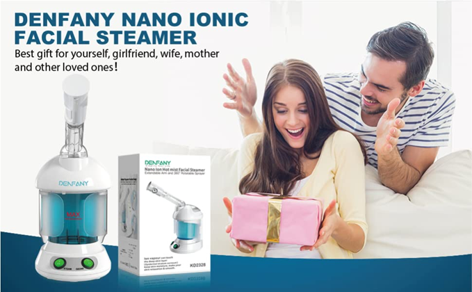- 【10X More Effective for Penetrating Skin】: Nano Ionic steam supplement moisture effectively; Compared to ordinary steamers, DENFANY facial steamer adopts ionic vaporization technology, which can ionize and activate water molecules, and creates ultra-fine steam that is easily absorbed by the skin. A tank of water can be sprayed for not less than 35 minutes.
