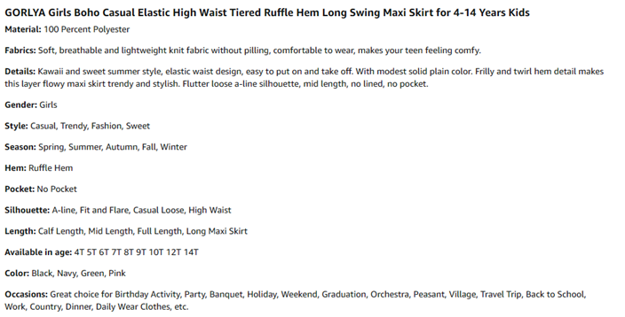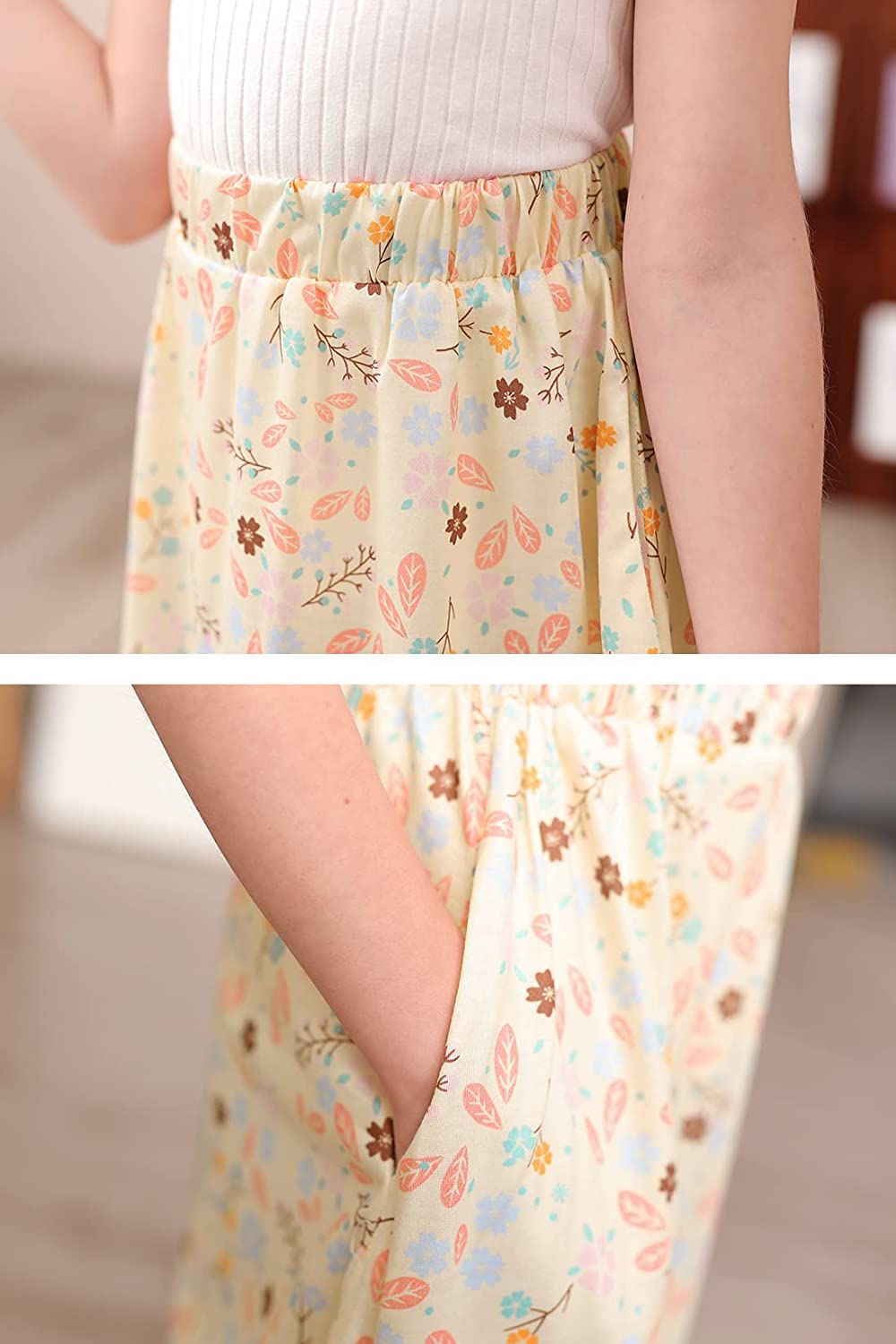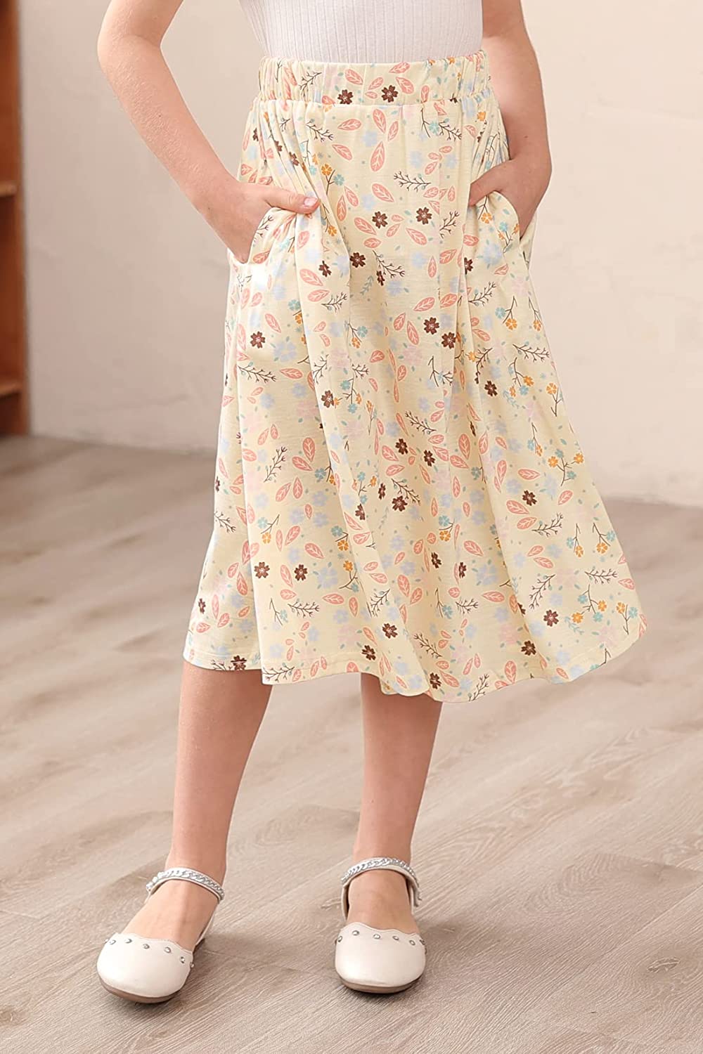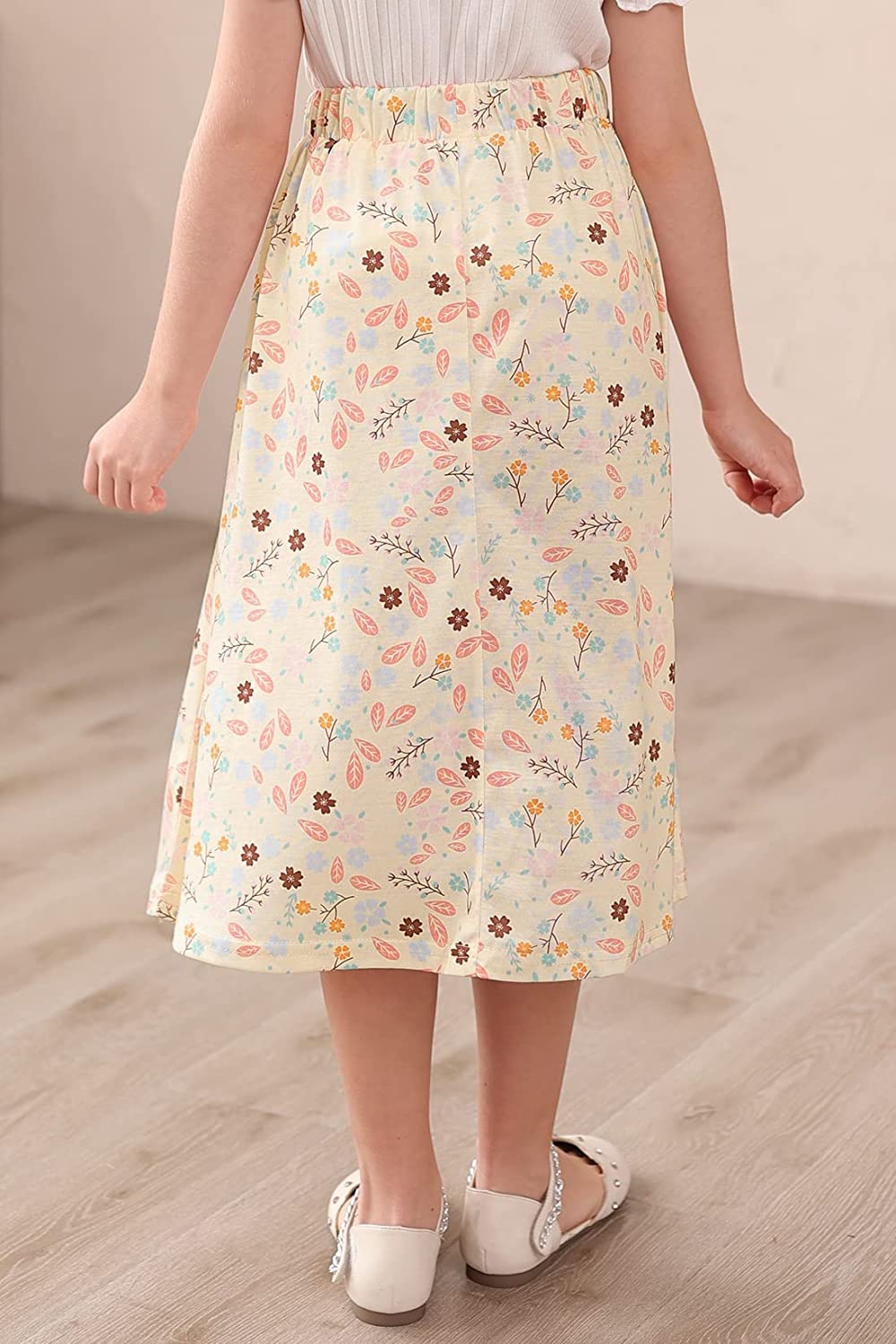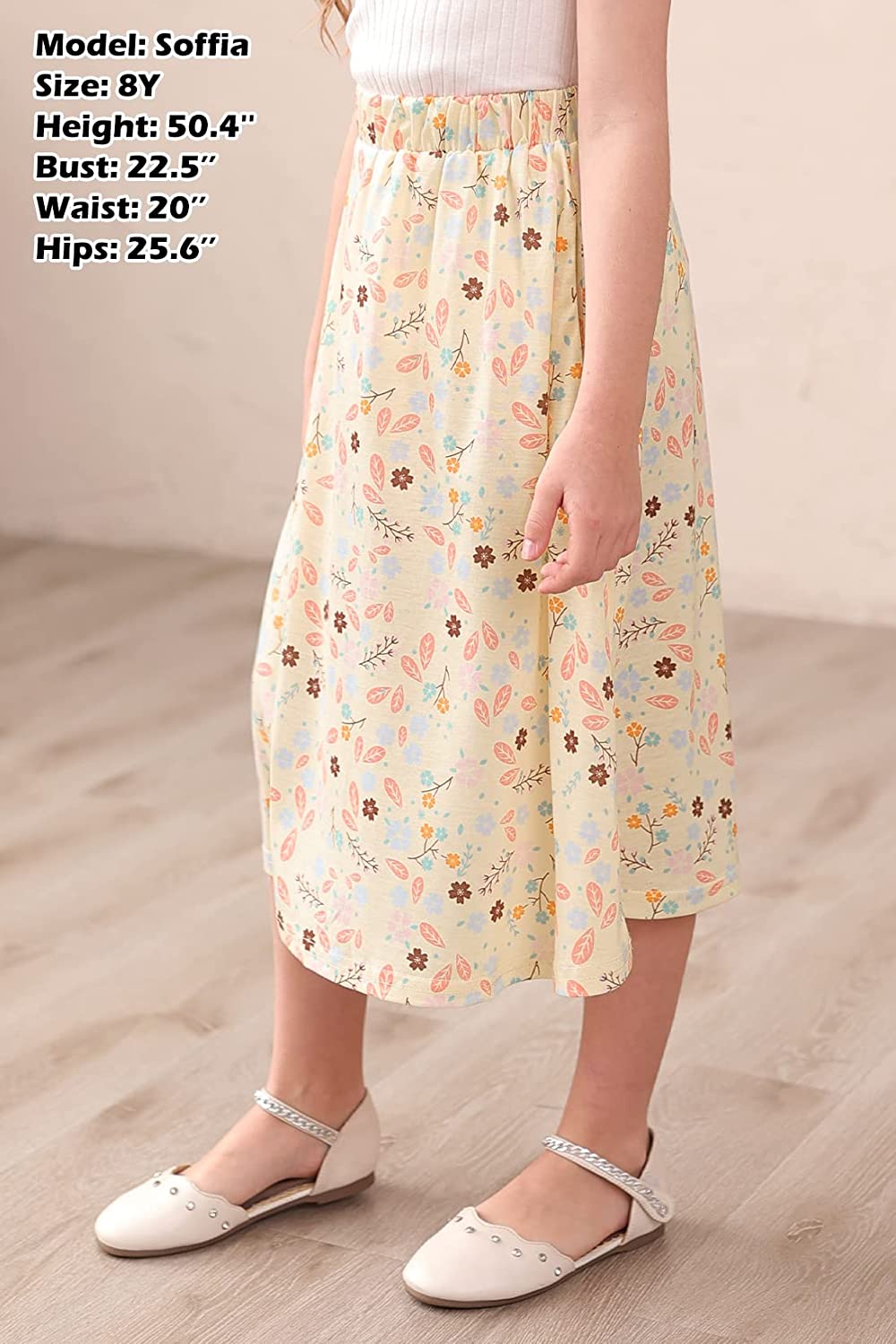 GORLYA Girls Boho Casual Elastic High Waist Tiered Ruffle Hem Long Swing Maxi Skirt 4-14T