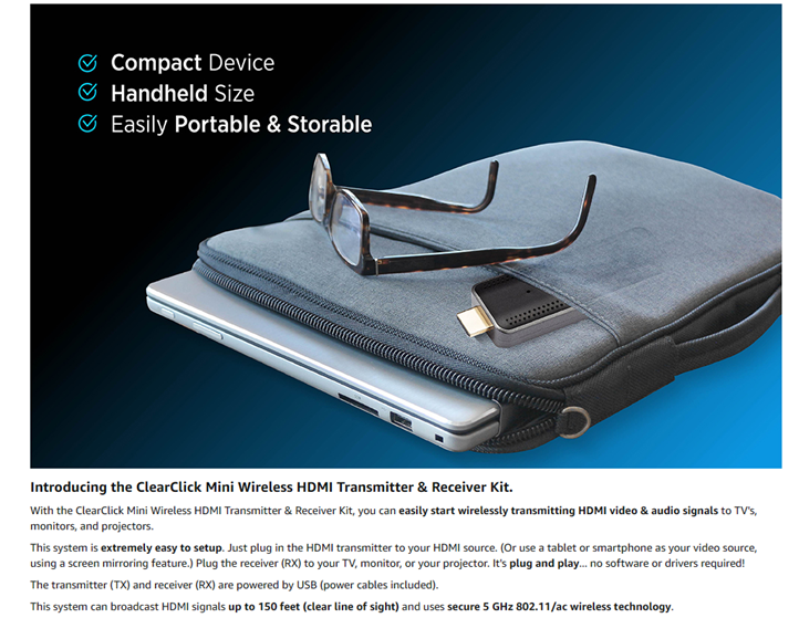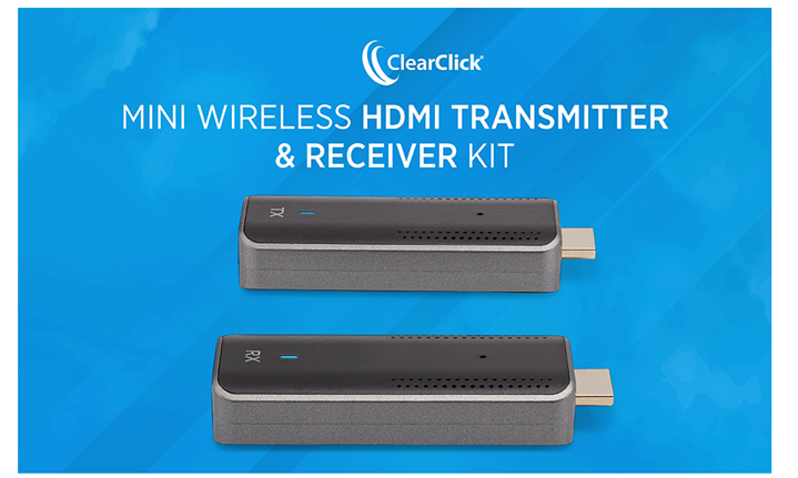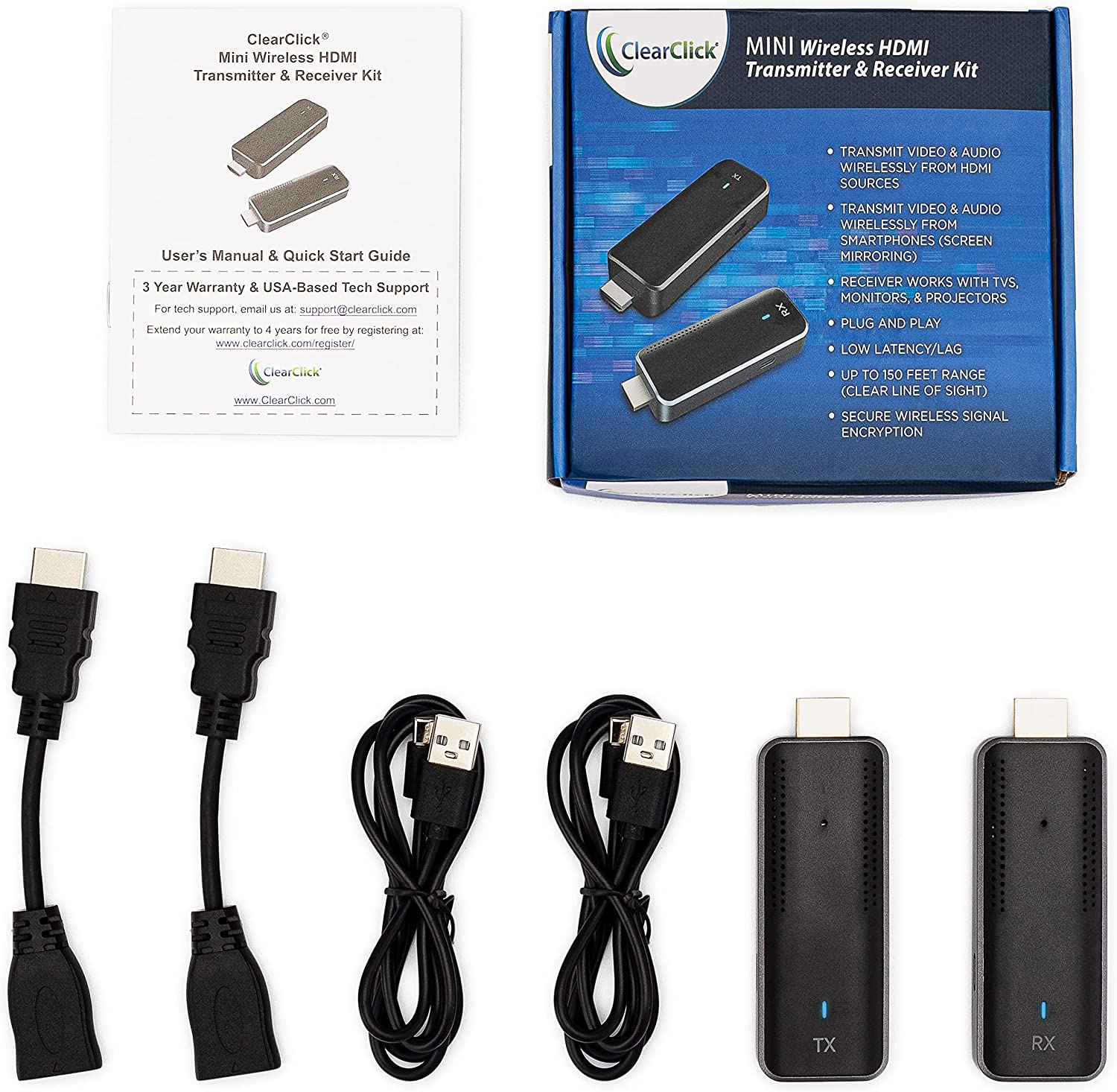 ClearClick Mini Wireless HDMI Transmitter & Receiver Kit - Transmit HDMI Video Up to 1080P - Transmit from HDMI, Phone, or Tablet - Up to 150' Range