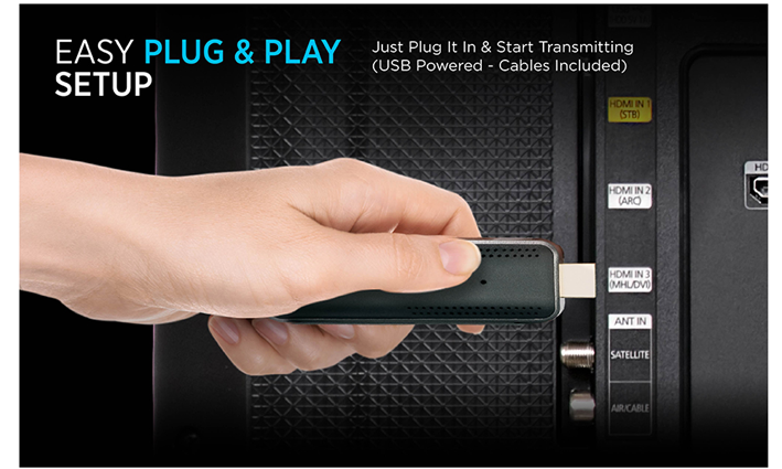 • Easy Plug & Play Setup - Just Plug It In & Start Transmitting (USB Powered - Cables Included)