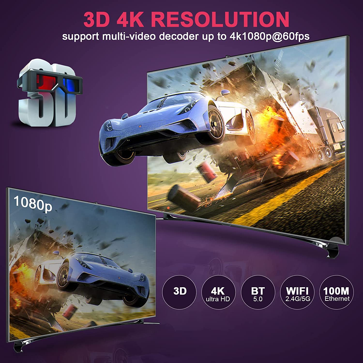 - Note: Please confirm whether your TV supports 4K/ 6K resolution or not, meanwhile, if the video you watch supports 4K/ 6K resolution, then the TV box also supports 4K/ 6K. If you want to enjoy 3D movies with your home theater, you need to prepare a 3D video compatible TV format and pair a pair of 3D glasses at the same time.