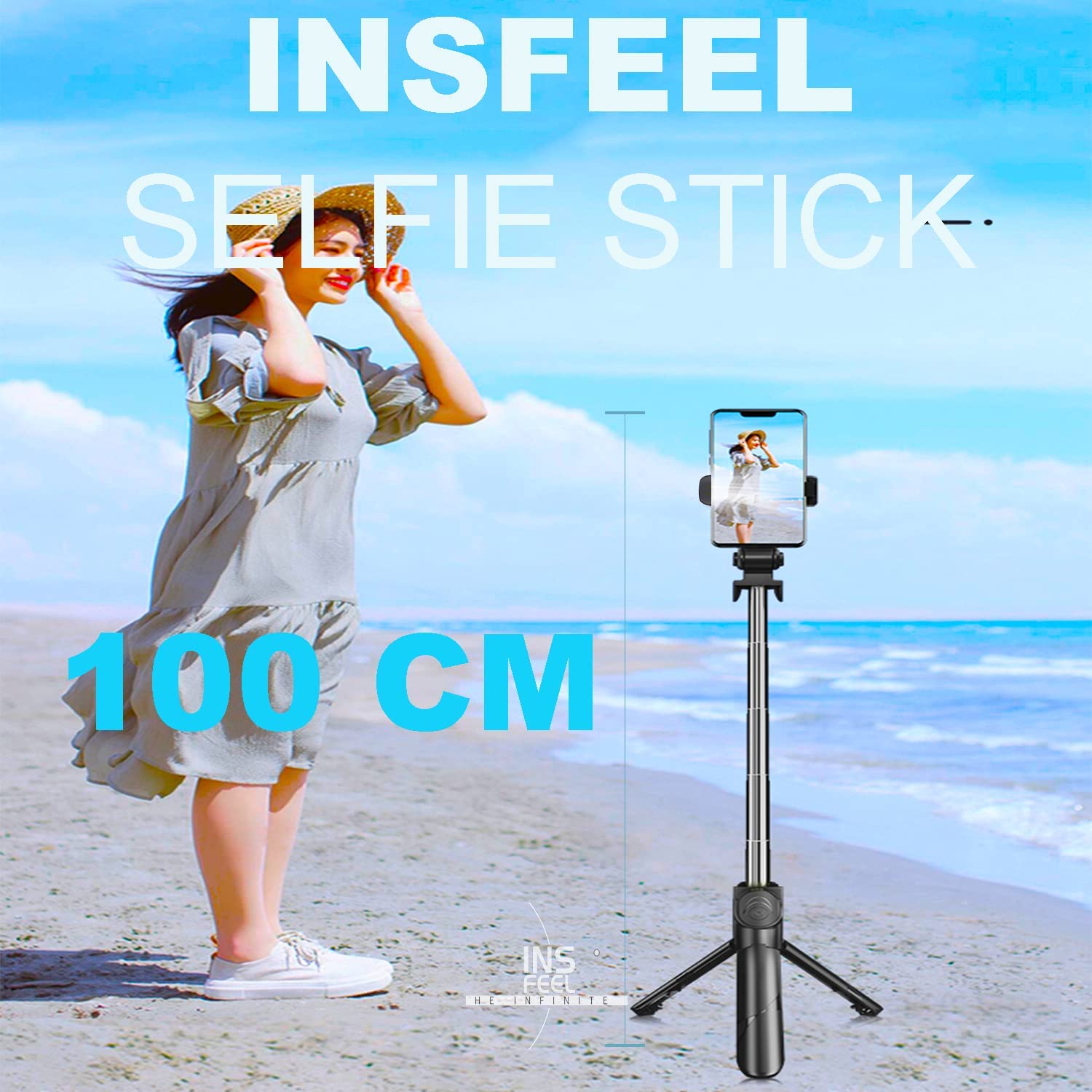 【PACKAGE & SERVICE】INSFEEL 38" Bluetooth Selfie Stick, wireless remote, our worry-free 1 year warranty and friendly customer service.