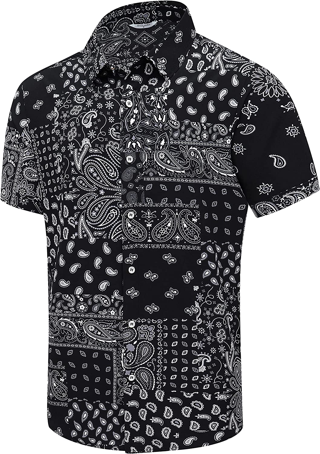 SheLucki Hawaiian Shirt for Men, Unisex Summer Beach Casual Short Sleeve Button Down Shirts, Printed Palmshadow Clothing