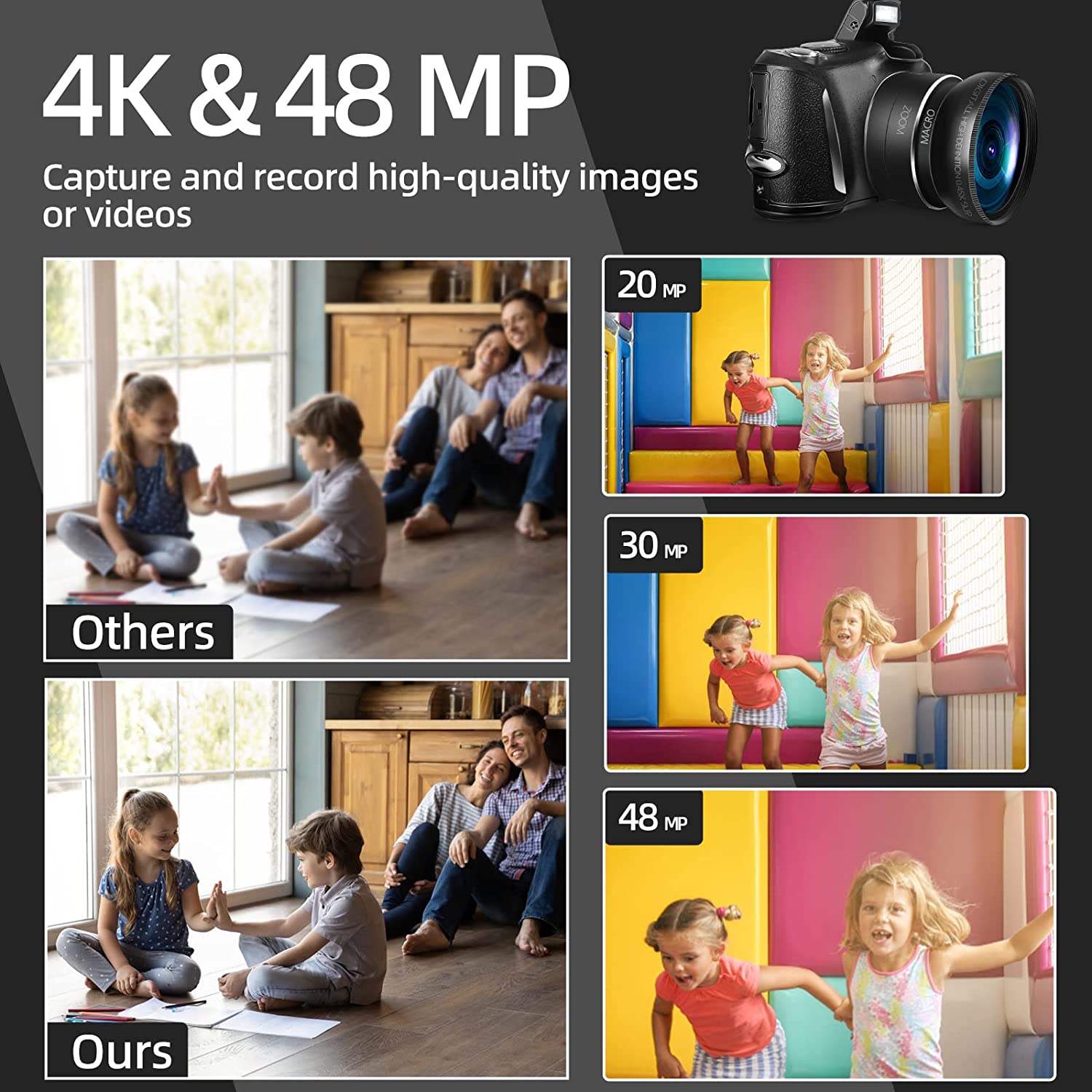 • 【48MP & 4K DIGITAL CAMERA】★ Take this small digital camera, with 48MP high resolution, every great moment in your life will not be missed. At the same time, this digital video camera supports 4K high-definition video recording. With this mini digital camera, Beautiful scenery in traveling and great moments in having parties will be saved forever.