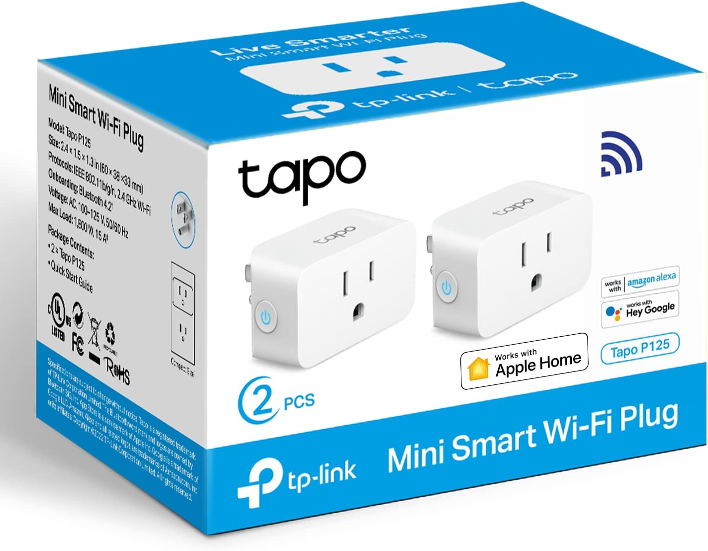 TP-Link Tapo Apple HomeKit Smart Plug Mini, Compact Design, 15A/1800W Max, Super Easy Setup, Works with Siri, Alexa & Google Home, UL Certified, 2.4G Wi-Fi Only, White, Tapo P125(2-Pack)