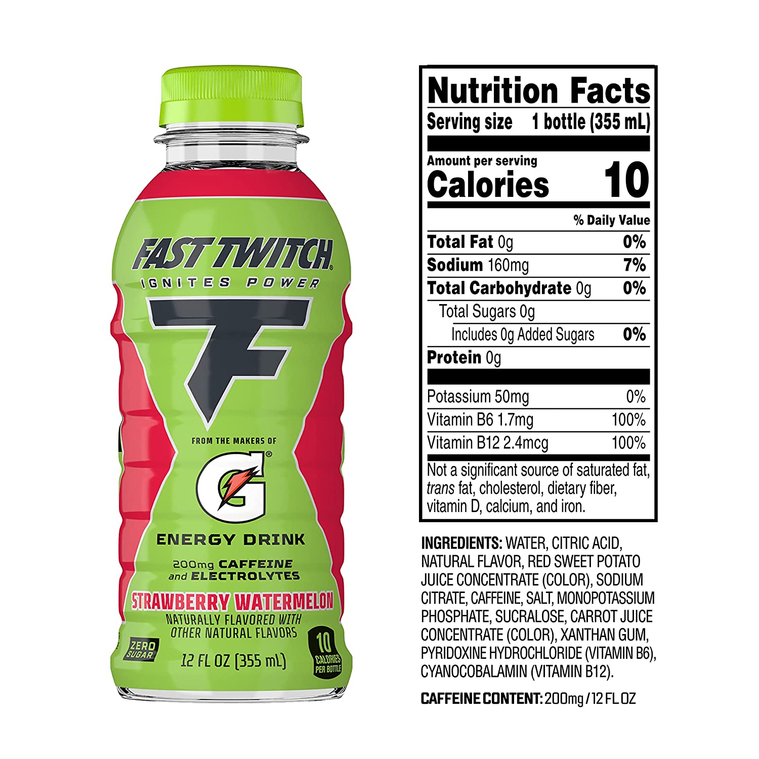 - Includes 12 (12oz) bottles of Fast Twitch Energy Drink, Strawberry Watermelon flavor