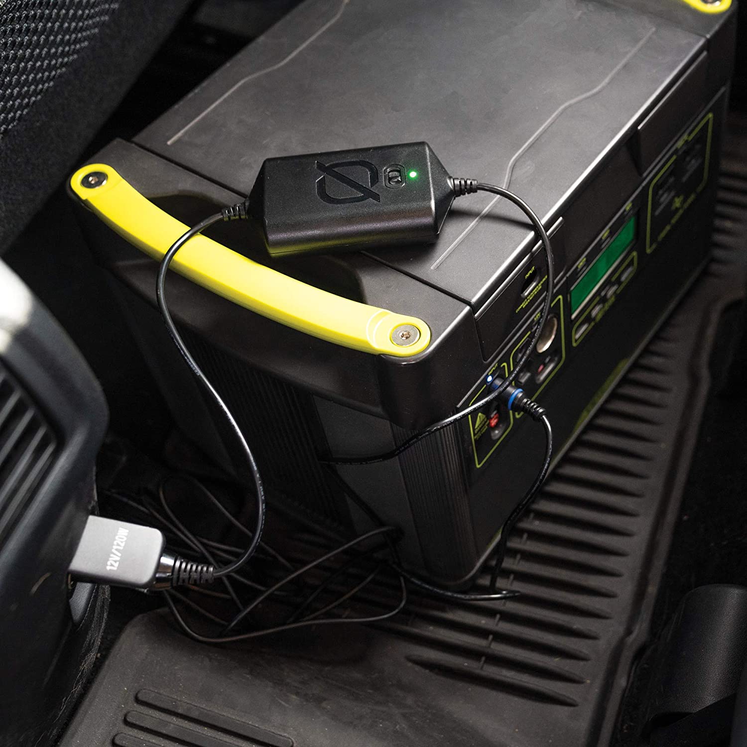 Used to safely and efficiently charge a Goal Zero Yeti Lithium or Lead-Acid from a 12V source, featuring a protective 15A user-replaceable fuse.