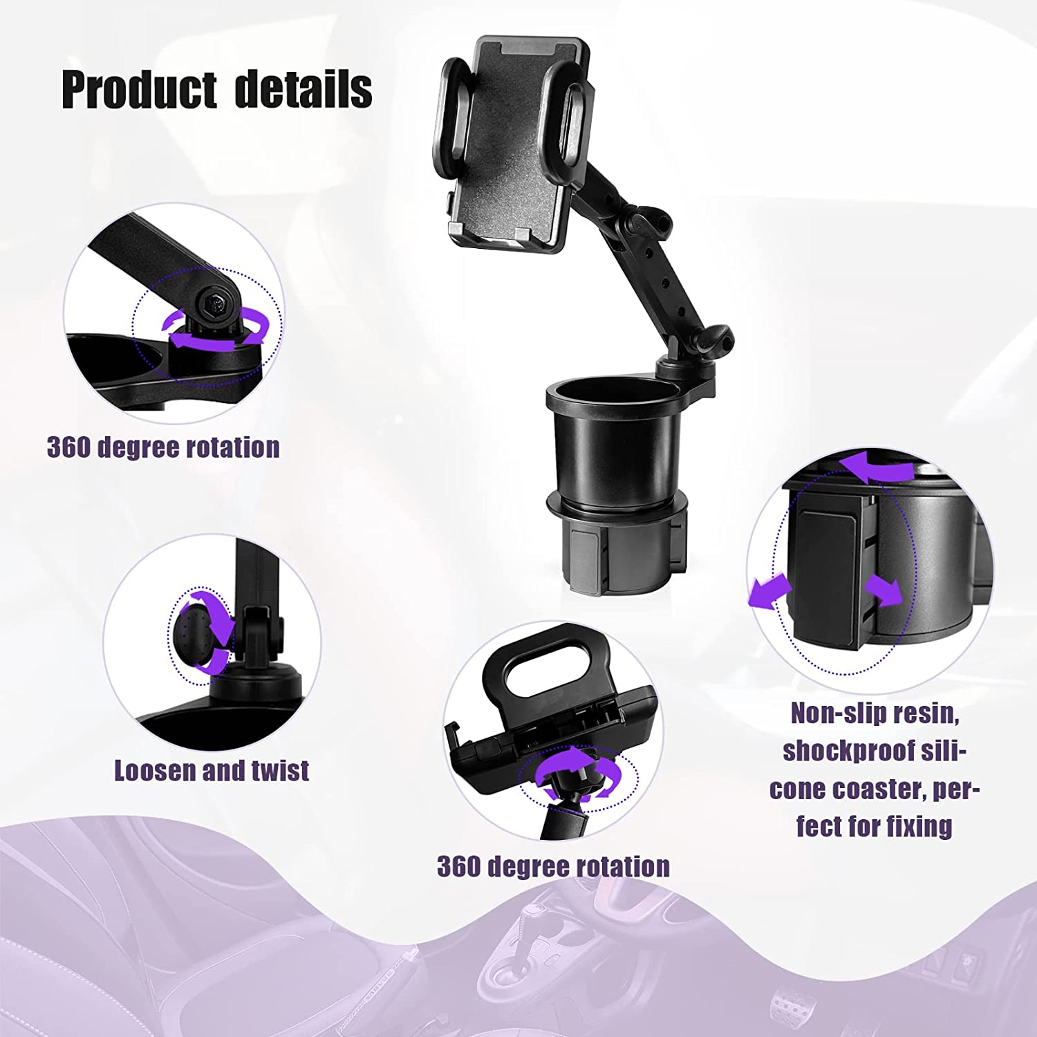 Widely Compatible: Our automotive adjustable cell phone holders fit most round car cup holders. While suitable for most cars, car cup holder designs vary widely and may not be compatible with some types of cup holders, be sure to measure your vehicle's cup holder to ensure a good fit.