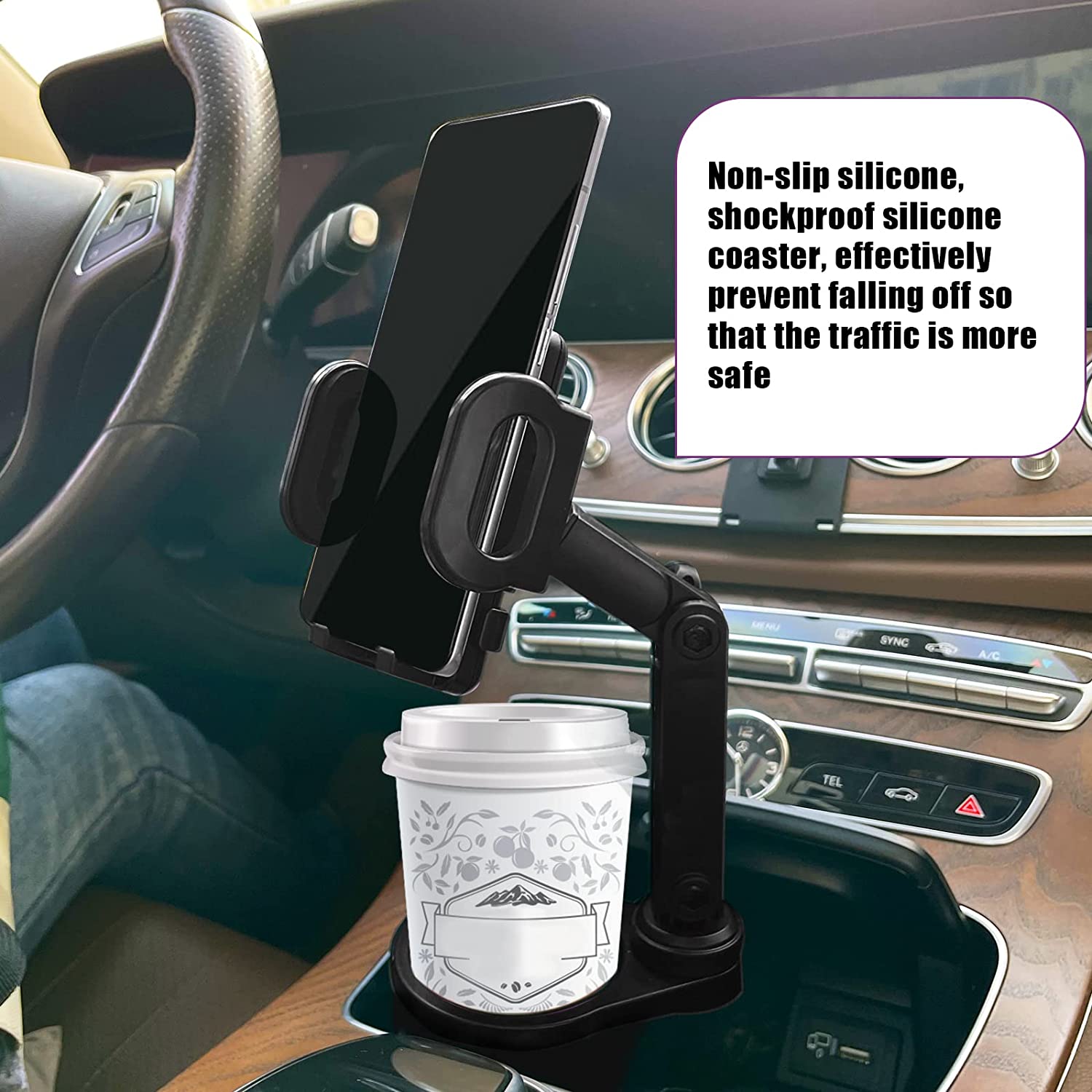 Quality Materials: This 2-in-1 car cup holder and mobile phone holder has a multi-functional design. It can not only be a car phone holder, it can also be a good car cup holder. The base is equipped with anti-slip silicone and shock-proof bubble cotton, and the mobile phone bracket is equipped with anti-slip bubble cotton, which can firmly fix your cup and mobile phone, making you more secure on the road.