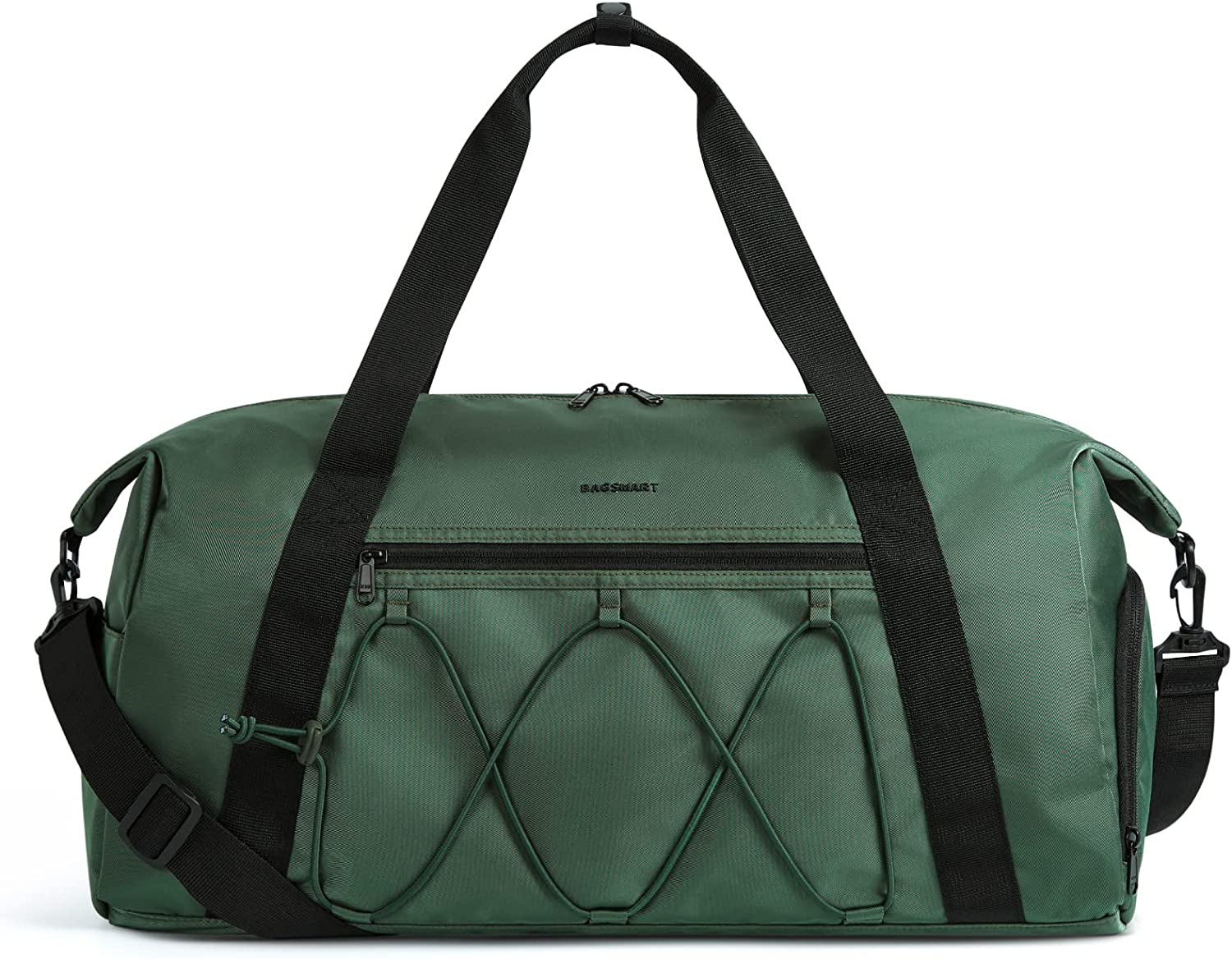 OUT-OF-SIGHT STORAGE: Sizes 22(L) x 7.1(W) x 11(H) inch. The BAGSMART Workout Bag is ideal for everyday use before and after training. The wide bottoms give you plenty of space for your things. The waterproof fabric inner pocket separates dirty and wet clothes(or toiletries) from other items for wet and dry storage.